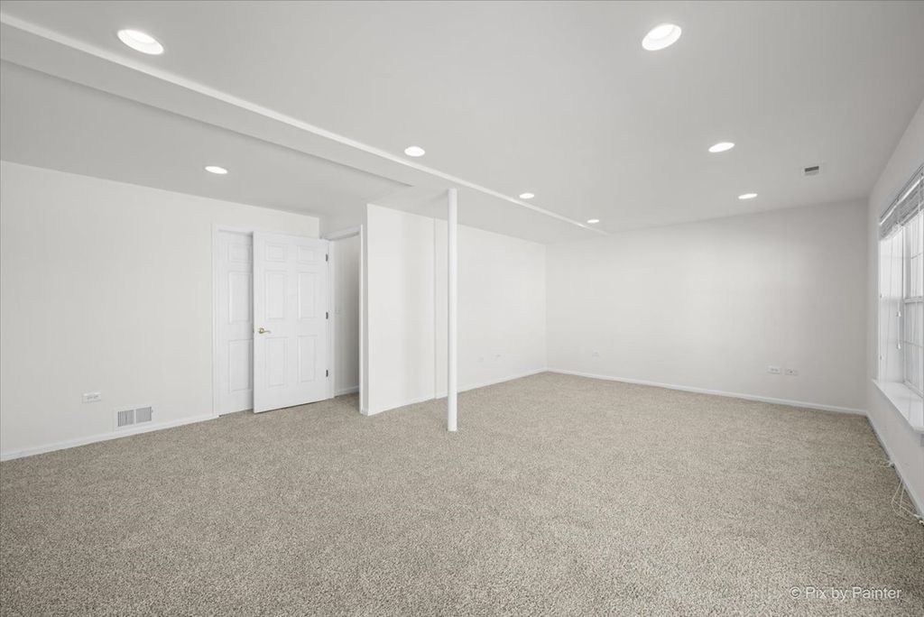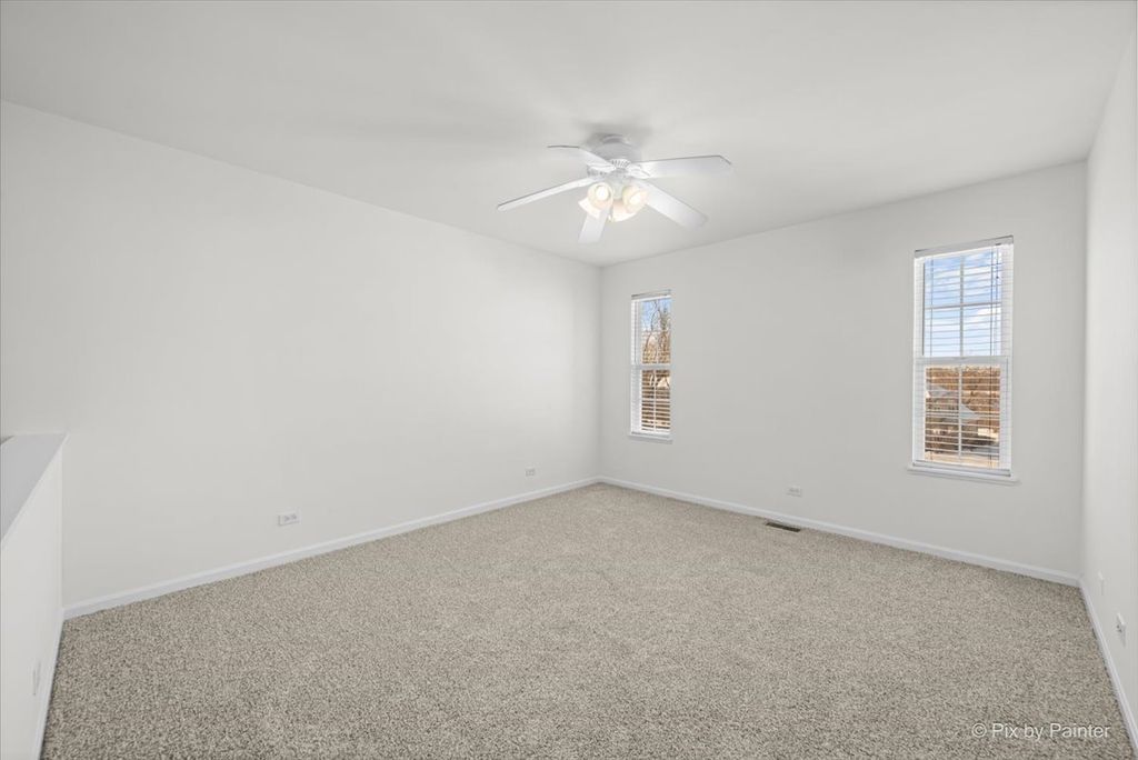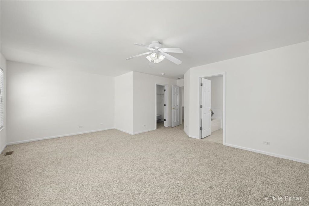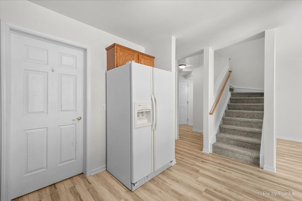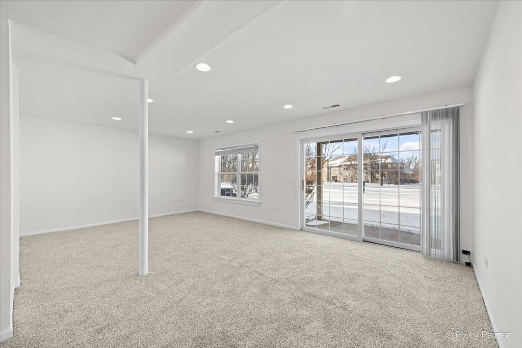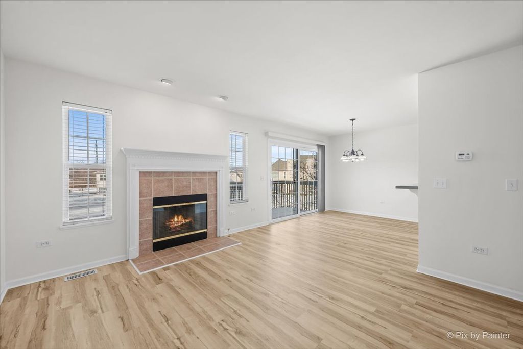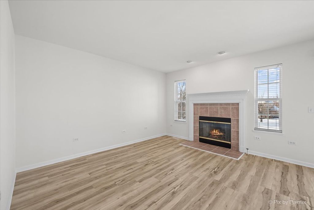 Welcome home to this sun-filled end-unit townhouse in desirable Cobblestone Woods, offering space, privacy, and incredible flexibility. Step into a bright and airy main living area featuring brand-new luxury vinyl plank flooring, a cozy fireplace, and an open layout perfect for everyday living and entertaining. The kitchen offers oak cabinetry, white appliances, and a convenient breakfast bar, seamlessly connecting to the dining and living spaces. Upstairs, you'll find a spacious primary bedroom with a walk-in closet, a comfortable second bedroom, and a huge second-floor loft-ideal as a home office, playroom, or easily converted into a third bedroom. The finished walkout basement is a standout feature, boasting high ceilings and expansive space perfect for a rec room, gym, media room, or additional living area. Step outside to enjoy peaceful views as the unit backs to an open courtyard, offering both privacy and green space. Recent updates provide peace of mind, including furnace and A/C (2 years), new washer and dryer (2 years), hot water heater (2 years), fresh paint, and sump pump and ejector pump (6 months), roof (less than 6 months, carpet (1 month), luxury vinyl plank flooring (1 month). The HOA has driveway & deck replacements planned in the near future, adding even more long-term value. Additional highlights include a 2-car garage, a quiet and serene setting, and easy access to a long walking trail just steps from your door. Located in a highly regarded school district, including Prairie Ridge High School, this home checks all the boxes for comfort, convenience, and future potential. A rare end-unit opportunity in a peaceful community-move right in and enjoy!