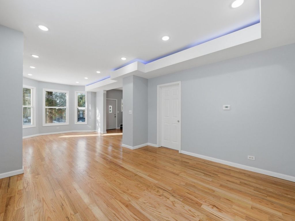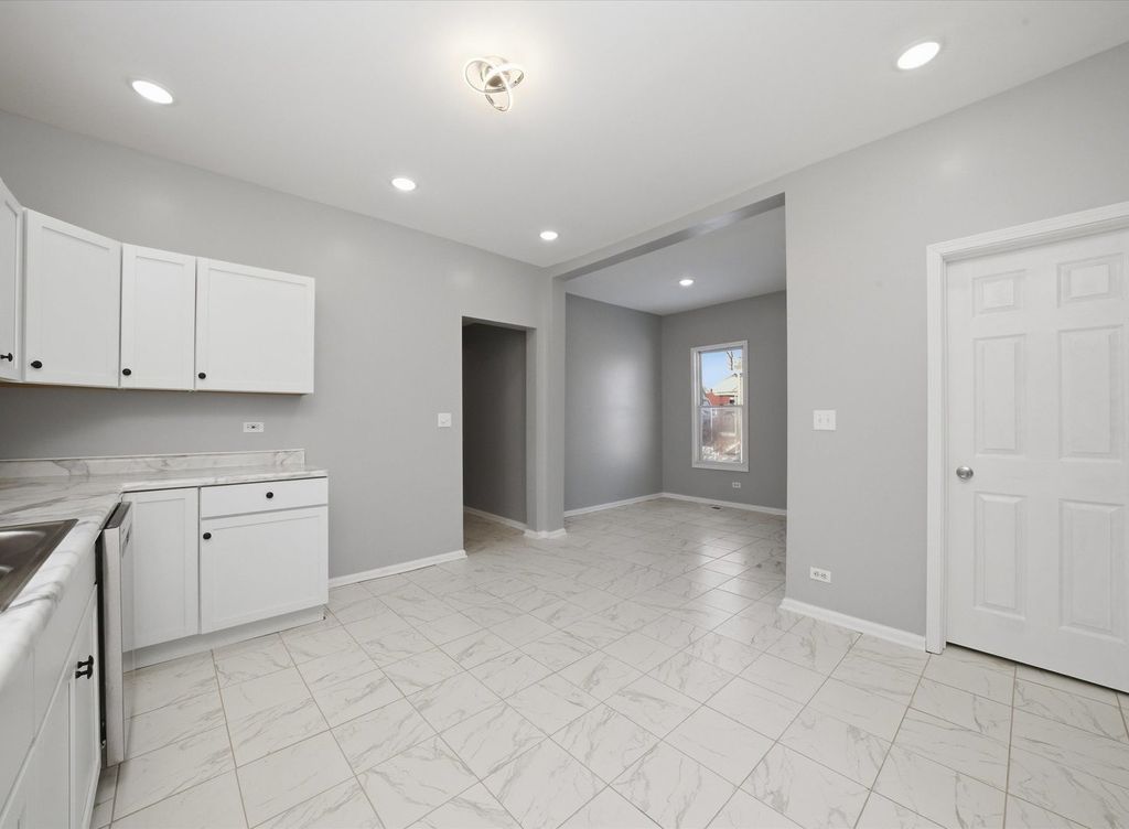 Entertainer's dream home situated on three city lots with low property taxes. This fully remodeled three-level property features 4 bedrooms and 3 full bathrooms. Recent updates include a new roof, gutters, and windows. The main level offers high ceilings, new hardwood floors, and recessed lighting in the living room, kitchen, and dining room, along with tray ceilings and accent lighting throughout. The finished basement includes epoxy floors, recessed lighting, new windows, a full bathroom, an additional bedroom, and direct access to an oversized backyard, perfect for both indoor and outdoor entertaining. Conveniently located near major interstate highways and the Chicago/Indiana Skyway, providing easy access to Indiana. Just 10 minutes from Indiana beaches and shopping, offering the best of both states-city convenience with nearby lakefront living. A must-see!
