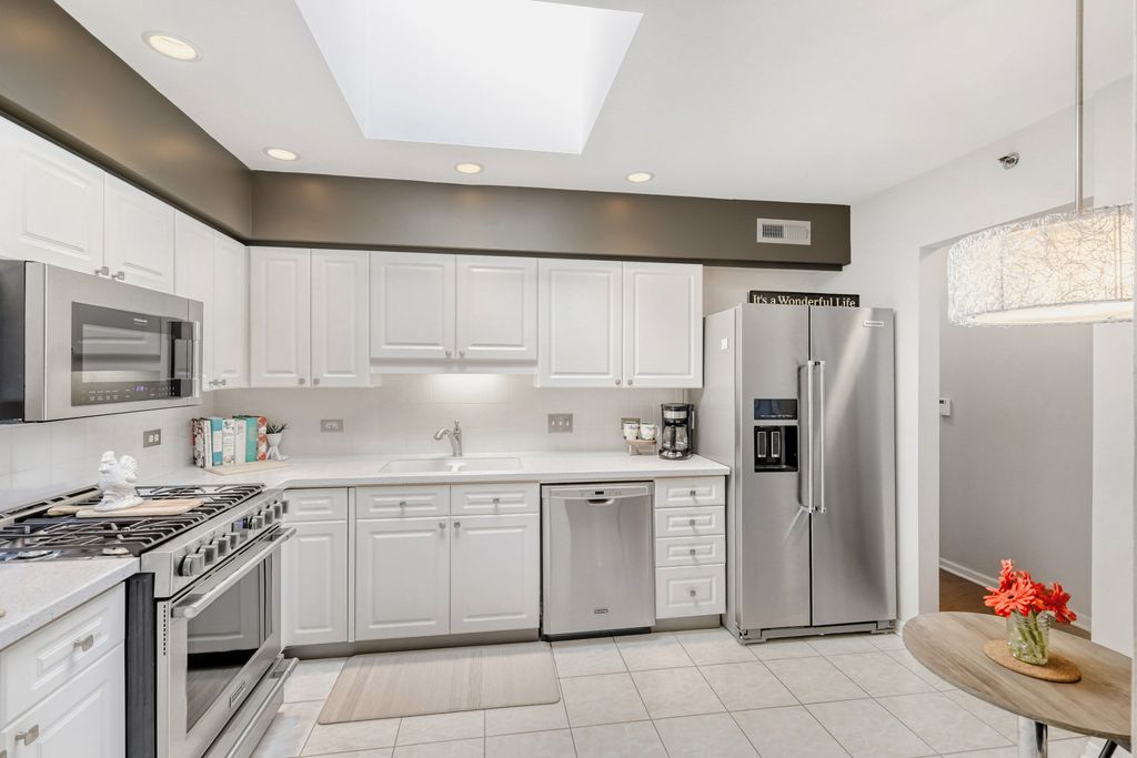 FORE!! Gorgeous top floor unit overlooking the 9th fairway of the Old Orchard Country Golf Course! Meticulously maintained and is waiting your arrival. This two bedroom, two bath unit is quite versatile. Living room and dining room combination is perfect for entertaining or relaxing after a long hard day. A skylight in the kitchen exudes cheerfulness, brightness and warmth. Top of the line appliances, ceramic flooring and gobs of cabinets are ideal for storage. The master suite is quite ample and offers a walk in closet and a separate tub and shower for your convenience. The second bedroom is being used as a den/office area, just right for those who crave quiet reflection. Enjoy the oversized balcony during warm weather months or check out the swings of the golfers below. I don't want to omit the in-unit washer/dryer and many amenities which include a clubhouse and an outdoor pool. Convenient garage parking, number 31, make entering and exiting easy. A storage closet is also located by the parking space. Come over and take a peek, you will love what you see!
