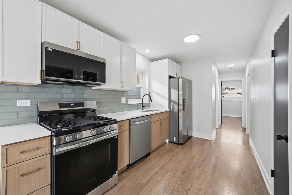 Welcome to this beautifully updated 3-bedroom, 2-bath home at 3415 N Kenton Ave, Chicago, IL 60641, where modern upgrades meet timeless charm. This move in ready property features a brand new kitchen with sleek slim shaker cabinets, elegant quartz countertops, and a stunning designer backsplash, creating a bright and functional space perfect for everyday living and entertaining. The home offers two modernly updated bathrooms with stylish finishes and contemporary design. Refinished hardwood floors flow throughout the main living areas, complemented by fresh, neutral paint throughout that enhances the home's natural light and creates a warm, cohesive feel. The full finished basement provides excellent additional living space ideal for a family room, home office, gym, or entertaining area. Thoughtfully renovated from top to bottom, this home delivers comfort, functionality, and style.