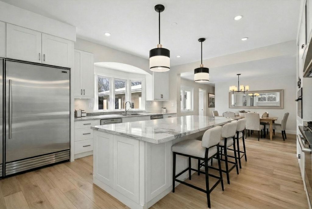 Set on over an acre in highly coveted High Ridge, this exceptional residence is a rare blend of luxury, scale, and thoughtful design. From the moment you arrive, the home makes a statement - elegant yet welcoming - created for those who value both everyday comfort and elevated entertaining. This home features four generously sized bedrooms and three full plus two half baths, with sun-filled living spaces that flow seamlessly from room to room. The expansive floor plan features a dramatic foyer and sunken living room with stunning stone fireplace. The elevated kitchen with eat-in breakfast area is designed for everyday ease, offering ample storage, high end appliances, and direct connection to the home's main living spaces. The private home office and sunroom complete the first floor. Walls of windows frame serene views of the surrounding property, bringing the outdoors in and enhancing the home's sense of privacy and tranquility. The sprawling yard offers endless possibilities for recreation, relaxation, or future enhancements. Many updates throughout including brand new roof and windows in 2025. A truly special offering where luxury, space, and setting come together to create an entertainer's paradise rarely found at this level.
