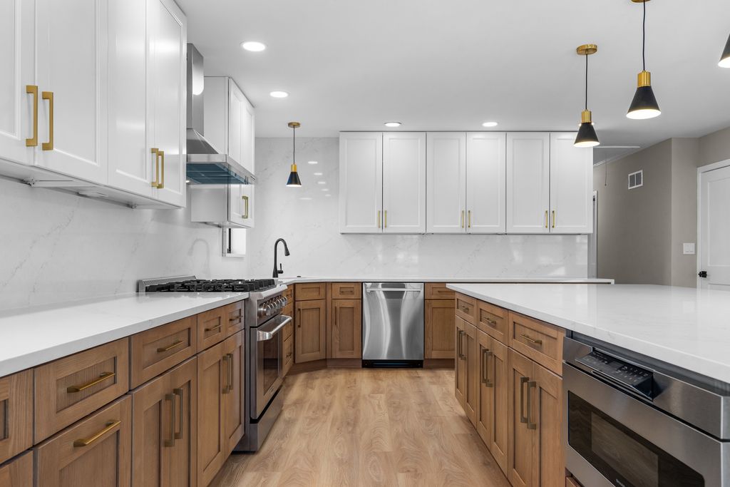 Spacious, updated, and move-in ready! This 6-bedroom, 3-full-bath home offers flexible multigenerational living with a private in-law arrangement and separate entrance. Major updates include new windows, siding, roof, gutters, and a brand-new deck! Inside features new floors, fresh paint, updated doors, baseboards, and light fixtures throughout, along with a remodeled kitchen and bathrooms. The kitchen shines with a 36" range and hood. Added perks include a tankless water heater, serviced HVAC, and manufacturer warranties on all new appliances. Space, updates, and versatility-all in one home!