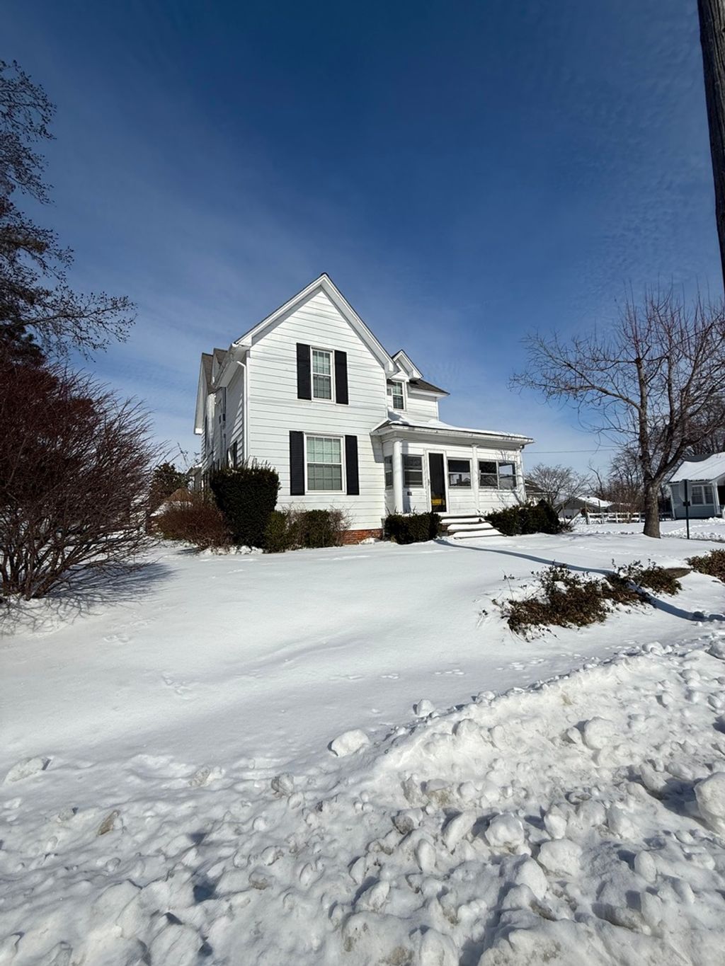 This charming and thoughtfully updated home blends modern comfort with original character in a good location close to the high school. Has 3-4 bedrooms and a 2-car garage, the layout provides flexibility for your family and a space for an office if needed. The galley-style kitchen features plenty of cabinetry and two pantries making storage a breeze. A formal dining room showcases beautiful knotty pine walls and a cozy window seat, creating a warm and inviting space for meals and family gatherings. Just off the dining room, the living room offers an electric log fireplace. The additional room off the living area can serve as a fourth bedroom or a private office with the original pocket doors. Upstairs you'll find 3 bedrooms and a 2nd full bath. The primary bedroom has a built-in wardrobe that highlights the home's original charm. Zoned heating allows you to heat only the areas you use. This home offers a wonderful mix of practical updates and functional space in a convenient location. Call to see this one today!