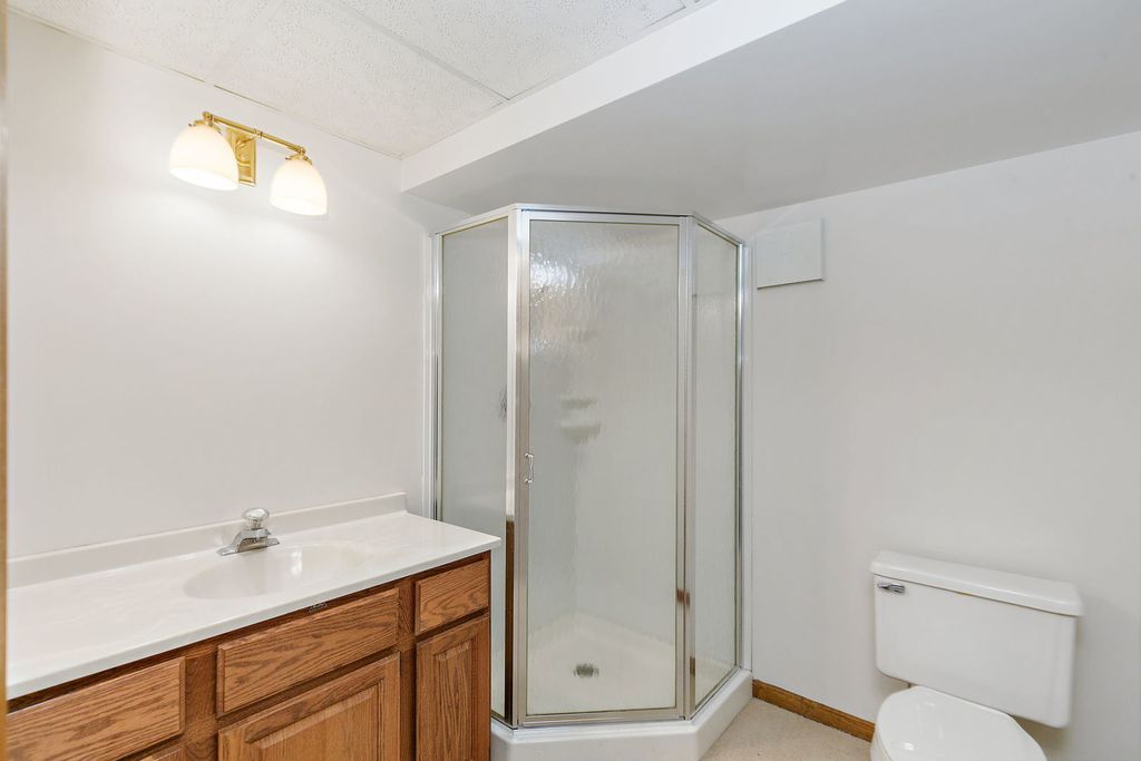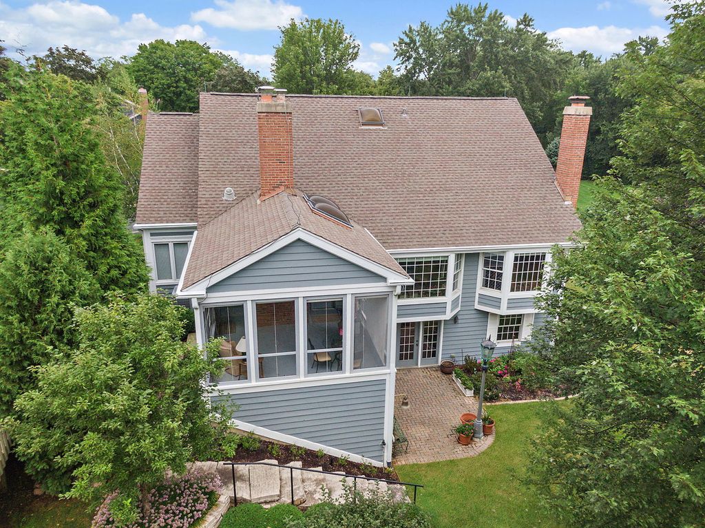 Welcome to this exceptional residence, a rare opportunity in a highly sought-after subdivision. From the moment you step inside, the elegant foyer sets the tone with stained glass details and parquet wood flooring that warmly welcomes you home. Just beyond, the spacious living room provides a comfortable retreat, while the formal dining room impresses with parquet floors, a vaulted tray ceiling, and an inviting atmosphere perfect for gatherings. The kitchen is a true centerpiece, featuring hardwood floors, recessed lighting, a large bay window above the sink, off-white cabinetry, and newer KitchenAid appliances. A light-filled eating area adds to the charm, while a convenient hallway off the kitchen includes a large pantry closet and easy access to the powder room and laundry. Flowing from the living room, the den offers a cozy gas-start wood-burning fireplace with exposed beam detail and direct access to the screened-in porch-the only one in the subdivision. With its vaulted ceiling, ceiling fan, and brick accent wall (the back of the den fireplace), this porch provides a unique backdrop for relaxation and could easily be converted into a four-season room. The first-floor primary suite is a luxurious retreat, featuring a spacious bedroom, a walk-in closet with organizers, and a spa-inspired bath with dual sinks, a whirlpool tub, and a separate shower. Upstairs, two generously sized bedrooms await, including one with hardwood floors, dual closets, and abundant natural light. A full bath with skylight, single vanity, and tub/shower combo completes this level, along with additional closet space for linens and storage. The full walkout basement expands the living space with a sprawling family room anchored by a wood-burning fireplace, a built-in entertainment center with wet bar, and plenty of room for recreation or relaxation. A full bath, kitchenette, and ample unfinished storage area with mechanicals and a sump pump with backup system provide both convenience and peace of mind. Outside, enjoy serene moments from the screened porch or entertain with ease in the expansive backyard setting. A 2.5-car garage offers additional storage and everyday practicality. And with Inverness Country Club right across the street, members can enjoy a quick golf cart ride to swimming pools, golf, tennis, and pickleball-making this location truly unbeatable. With thoughtful updates, quality finishes, and a unique floor plan that blends comfort and sophistication, this remarkable home is designed to impress at every turn.