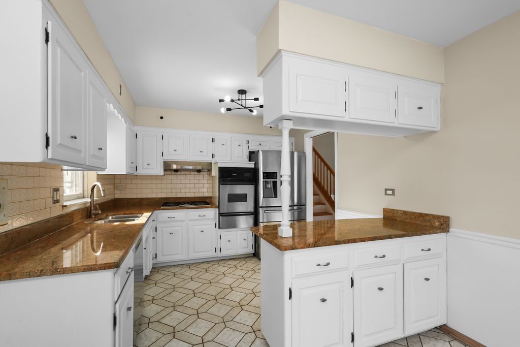 Welcome to this all-brick 3-bedroom, 2-bath home with a bright, open floor plan. The kitchen features stainless steel appliances, granite countertops, ample cabinet space, and a dining area. The home offers hardwood floors in the living room and bedrooms, a remodeled laundry room with new cabinets, and a lower level with heated floors. Enjoy the spacious, fully fenced backyard, perfect for relaxing or entertaining. Great location near Apache Park, Lake Opeka, and Lake Park Golf Course & Marina, and located in top-rated Districts 62 and 207 schools. Solar panels at no cost help cover the home's everyday energy needs, and an EV charging outlet is located in the garage. Welcome home!