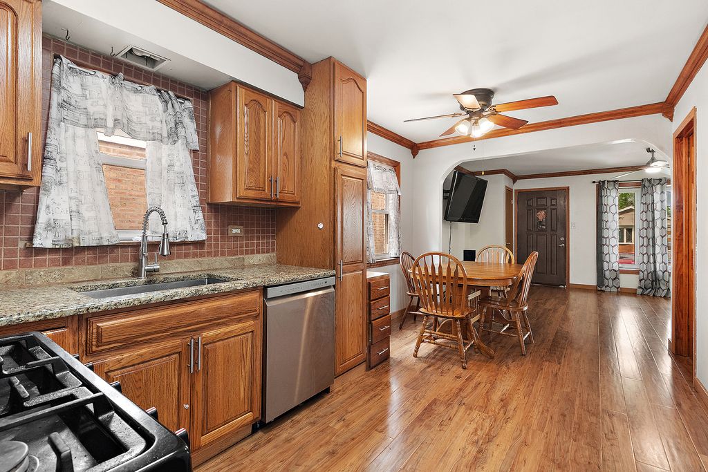 IN THE HEART OF MOUNT GREENWOOD! This updated ALL-BRICK bungalow blends timeless style with modern comfort just STEPS from the neighborhood's vibrant DOWNTOWN. The main floor features 3 spacious bedrooms, an updated tiled bath, a bright living room with crown molding, and a stylish kitchen with granite countertops, stainless steel appliances, and plenty of cabinetry. Throughout the main floor, NEW Pergo flooring (2024) adds a sleek, modern touch. The FINISHED basement adds versatility with an additional bedroom, full bath, and large living area-perfect for guests, a home office, or extended family. RECENT upgrades include a $9,300 full insulation throughout the home project (2024) for year-round comfort & ENERGY EFFICIENCY, updated/resealed windows, and a NEW roof (2021) & sump pumps (2025). Enjoy your PRIVATE OASIS in your fenced backyard with an enclosed, screened pergola-ideal for entertaining or relaxing outdoors. The OVERSIZED 2-car garage offers ample storage and workspace. Located in a friendly, walkable community, you'll be minutes from local shops, restaurants, top-rated schools, parks, and public transportation. This home delivers the perfect mix of small-town warmth and big-city convenience.
