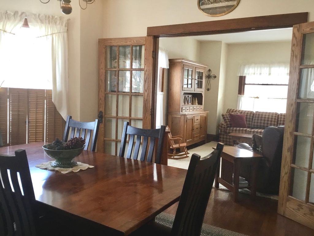 Welcome to Joliet's coveted Cathedral Area. This amazing Victorian has been meticulously maintained and thoughtfully updated while preserving its historical 1908 character. A covered front porch with a swing adorns the front of this 3-story (plus basement) and 2.5 car detached garage. Home features 4 bedrooms, 2 1/2 bath home on a tree lined street. Inside, beautiful quartersawn hardwood oak floors are featured throughout the home along with 5-panel doors. A leaded glass window and room-dividing columns greets you in the foyer, fine detailed woodwork on the staircase and that repeats throughout the home. In the dining room, French doors and the kitchen swing door highlight the room. The big bay window floods the room with natural sunlight. The kitchen includes all your desired modern amenities with granite countertops, an island breakfast bar, new stove/oven, beautiful wood cabinets and big pantry. ***Furnace, water heater, roof, leaf gutter filter all new in 2022, A/C - 2011. Electrical, plumbing, windows, siding were completely updated in 1997***. The updated half bath is thoughtfully tucked away off the rear entrance with new storm door which flows perfectly to the back covered porch and white picket fenced backyard with tree swing. The second story features all the bedrooms, including a surprisingly spacious primary bedroom with rare walk-in closet and sitting area. Full bath on this level is big, updated, and features a built-in linen closet. A walk up to the third story reveals a bonus room large enough for a multitude of uses, with custom beds, large closet, and original exposed brick. The finished, dry basement of this home is surprisingly bright, cozy, and inviting and features an updated full bathroom, big laundry room, new water softener, and ample storage room. All area rugs on the main level and the basement stay. The 2 1/2 car garage has all the room you could need for two cars plus storage, no alley behind the home it backs up to the church. Great neighborhood close to public and private schools, churches, and many other amenities.
