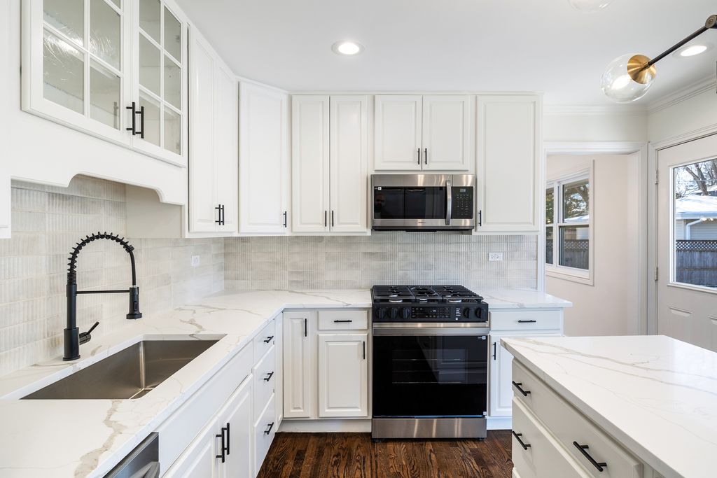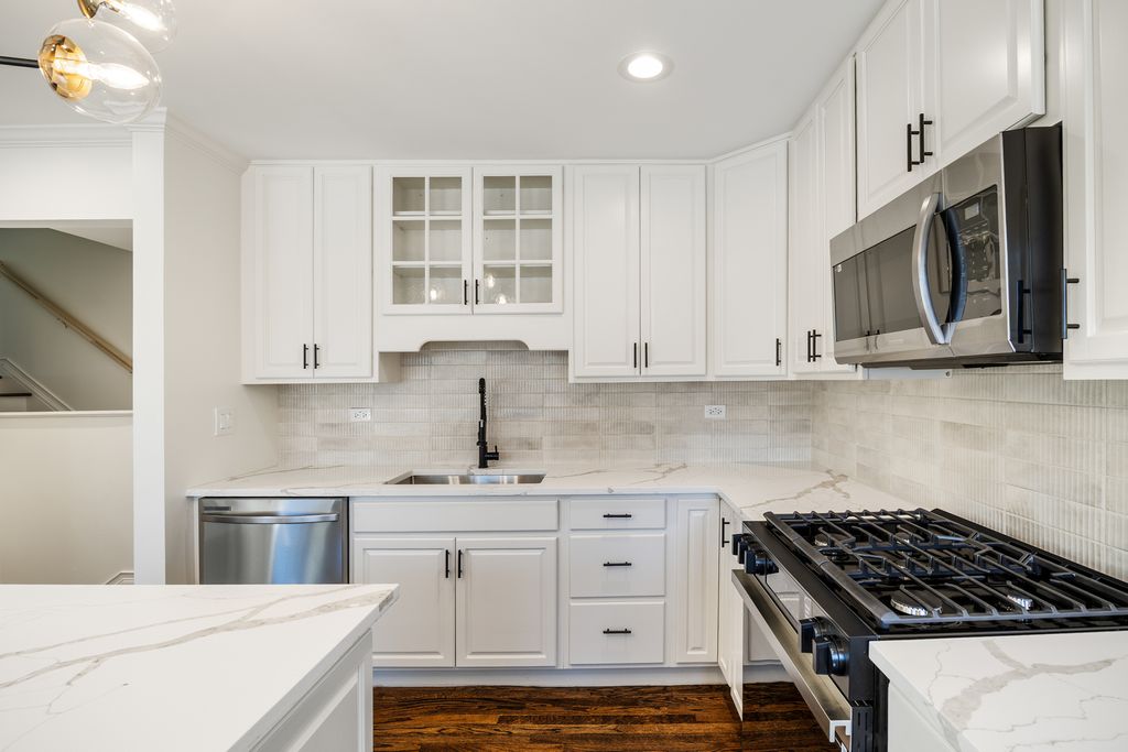 Beautifully updated split-level home in prime Libertyville location. Located directly across from Copeland Manor Elementary School and park, offering unmatched convenience for families. This home features 4 bedrooms and 2.5 bathrooms, with refinished hardwood floors throughout and all new light fixtures. The updated kitchen includes new appliances, quartz countertops, and a stylish tile backsplash. A custom mudroom with built-in cubbies and a laundry room with beautiful cabinetry add both function and charm. The lower level offers a bedroom, full bath, family room with fireplace, and a utility room with abundant storage. Outdoor living shines with professional landscaping, a brick-paved patio and driveway, fully fenced yard, outdoor kitchen with gas line for grill, and an impressive batting cage-perfect for baseball lovers and entertaining. A standout feature is additional living space/man cave above the garage, featuring log cabin walls, kitchenette with bar island, full bath, and separate heating and AC-ideal for entertaining or guests. Additional highlights include a heated two-car garage with a new side-mounted opener. A rare opportunity in a highly desirable Libertyville neighborhood.