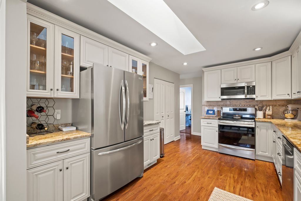 Welcome to 59th Street in the highly sought-after Winston Hills subdivision of Woodridge! Nestled among mature trees and surrounded by luxurious homes, this tranquil, dead-end street offers the perfect setting for this meticulously updated 4-bedroom ranch. As you approach the front door, you'll be greeted by a charming front porch; an inviting space to relax and enjoy the serenity of the neighborhood. The home features a large family room with a cozy gas fireplace, soaring vaulted ceilings, skylights, and elegant crown molding throughout. The heart of the home is the beautifully updated kitchen, complete with stainless steel appliances, stunning granite countertops, and additional skylights that flood the space with natural light. The main living areas, including the kitchen, living room, dining room, entryway, and two of the bedrooms, boast durable engineered hardwood flooring. The professionally landscaped yard provides a picturesque backdrop for the expansive composite deck, perfect for entertaining or simply enjoying the outdoors. Recent updates: New windows and siding 2015, composite wood deck and front porch 2016, paver walkway 2018, stainless steel appliances 2021, and the master bath was beautifully remodeled in 2022. The family room also received fresh new carpet in 2022 and 2 bedrooms in 2023. Located in the award-winning school district, this home is zoned for Willow Creek Elementary, Thomas Jefferson Junior High, and Downers Grove North High School. Enjoy the convenience of being just minutes from schools, parks, shopping, dining, and easy access to I-355 and I-88. This home offers an ideal blend of comfort, style, and convenience-don't miss out on the opportunity to make it yours!