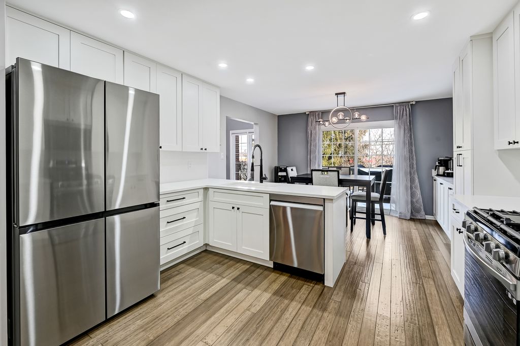 WELCOME to this INCREDIBLE Deluxe END UNIT Townhome in the Desirable Neighborhood of HUNTER WOODS~Step Inside and Enjoy Beautiful BAMBOO Flooring throughout the Main Level~The Living Room Showcases SOARING 17' CEILINGS and a Gas FIREPLACE Drenched in NATURAL LIGHT~The Large EAT-In Kitchen was Updated in 2025 and Features QUARTZ Countertops and Backsplash, an Abundance of CUSTOM CABINETRY, New Lighting and all New Stainless Steel Appliances~New Sliding Patio Door 2024 leads to a Private Deck that was Freshly Painted in 2025~Home was also Professionally Painted in 2025~The Spacious Primary Bedroom features Double-Door Entry, a Walk-In Closet and Private Bathroom Updated 2023~Other Bathrooms Updated 2025~Convenient Main Level Laundry with New Washer/Dryer 2025 Included~The FINISHED LOWER LEVEL in 2024 offers even More Living Space with 3rd Bedroom, Family Room, Workout Room and Storage Room~HWH and Whole House Water Filtration System 2024~Gas Heater in Garage, Insulated Garage Door and Side Mount Garage Door Opener 2024~Conveniently Located near Shopping and Restaurants!, PLUS The Charm of Historic Downtown Frankfort & Local Events & Available Entertainment in your Home Neighborhood! ~ Come See This MOVE-IN Ready GEM Today!!
