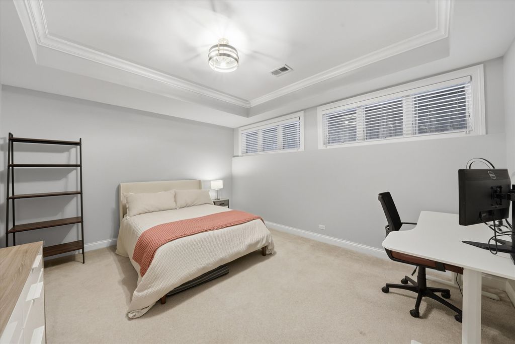 Set within the highly sought-after Blaine School District, this expansive 3-bedroom, 3-bathroom duplex at 3709 N Ashland, Unit 1S offers an exceptional blend of space, style, and location in the heart of Lakeview. Located in a solid all-brick, boutique six-unit building, this contemporary home lives like a single-family residence with two full levels of living, abundant natural light, and rare outdoor space. The main level features an open and airy living space highlighted by hardwood floors, oversized windows with east, west, and southern exposures, and a cozy fireplace that anchors the room. The layout flows seamlessly into the dining area and chef's kitchen, outfitted with cherry shaker cabinetry, granite countertops, an oversized breakfast bar, a built-in beverage refrigerator, and ample storage, ideal for everyday living. Also on the main level is a spacious primary suite designed as a true retreat, complete with a walk-in closet and a spa-like en-suite bath featuring a steam shower and jacuzzi tub. A second generously sized bedroom and full bath on this floor provide flexibility for a home office, nursery, or guest space. Step outside to the covered balcony, accessible from both the hallway and primary suite, offering plenty of room for seating and grilling with welcome shade throughout the day. The lower level opens into a large, light-filled family room with tall ceilings and multiple windows, creating an inviting space for relaxing or hosting. A wet bar with an additional beverage refrigerator makes this level perfect for entertaining. A third bedroom and full bathroom on this floor offer privacy for guests or extended stays. One of the home's standout features is the expansive private roof deck above the garage, large enough to accommodate a dining area, lounge seating, grill, and garden. With added privacy walls, it's the perfect setting for summer gatherings. Additional highlights include in-unit laundry, dual-zoned central heating and cooling, abundant storage, and one garage parking space. Ideally located near the Southport Corridor, you're just steps from neighborhood favorites like Crosby's Kitchen, Southport Grocery & Cafe, and Coda di Volpe, along with easy access to public transportation, grocery stores, fitness studios, and everything Lakeview has to offer. Explore the home in 3D-click the virtual tour to walk through every detail.