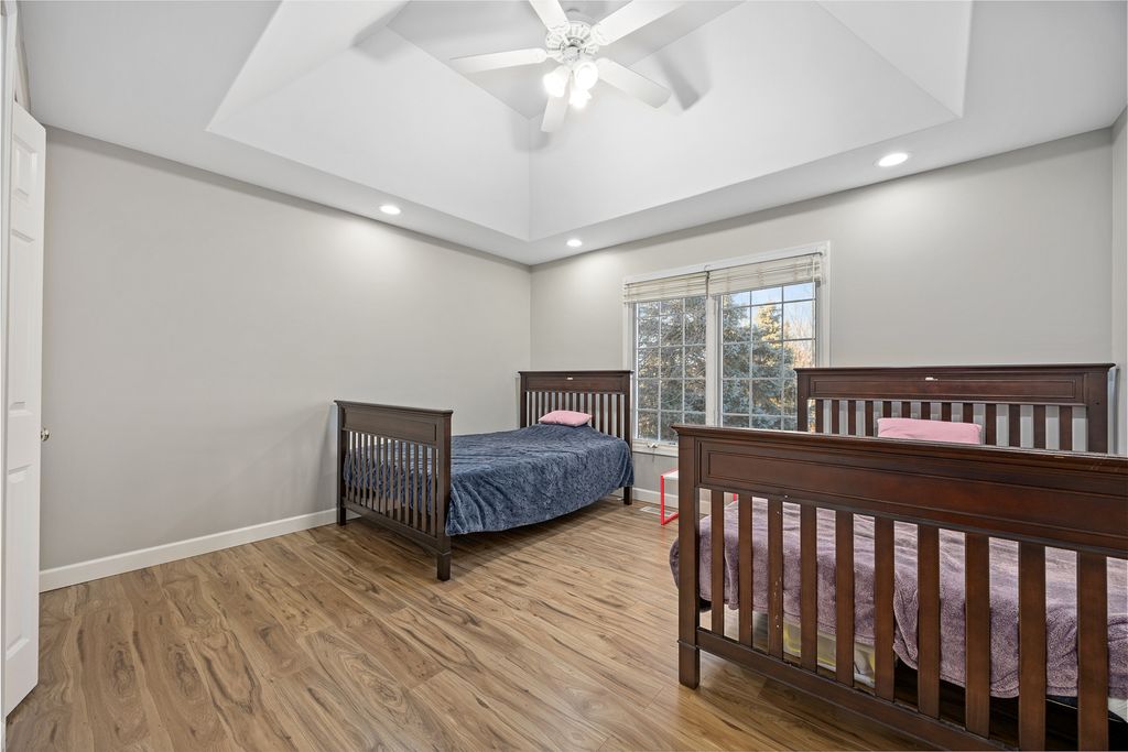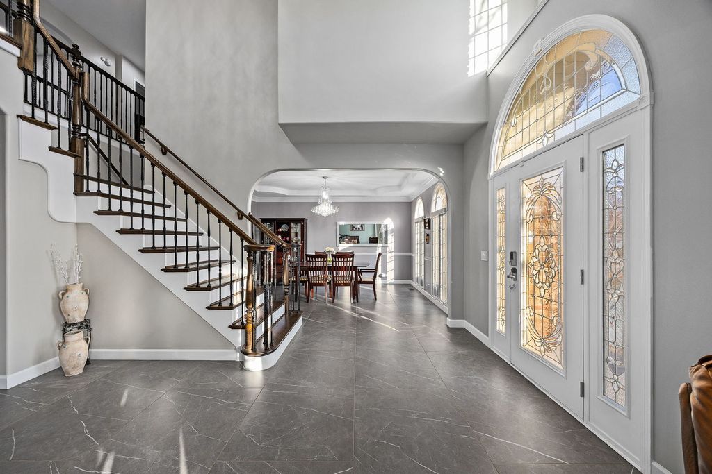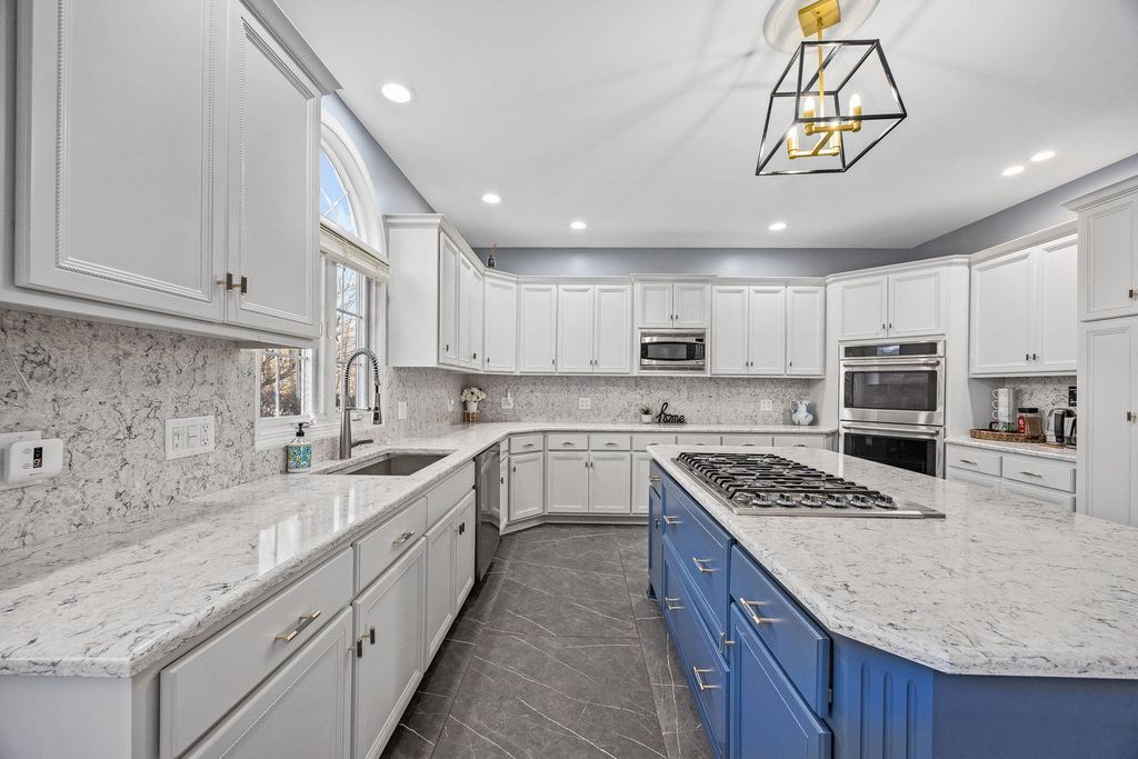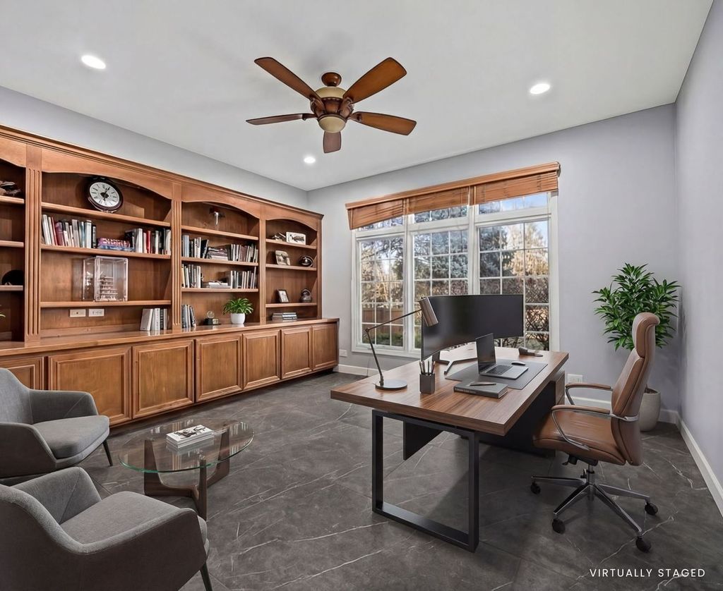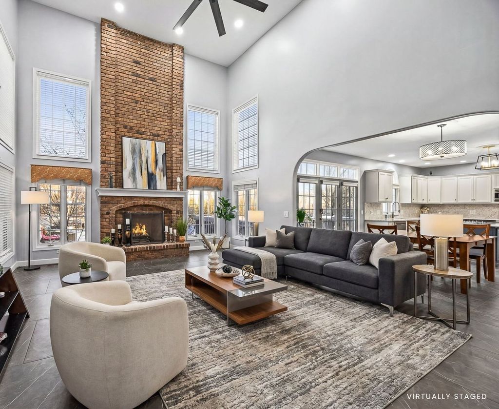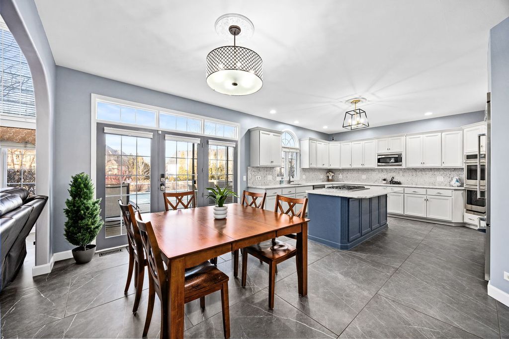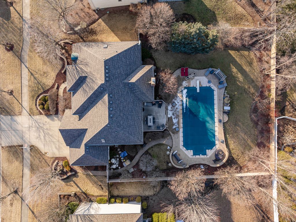 Experience elevated living in this beautifully upgraded Kobler Construction residence nestled within the sought after Tamarack West community. Offering 6 Bedrooms and 4.5 Baths, this home is thoughtfully designed for refined comfort and grand-scale entertaining. A large in-ground swimming pool, framed by mature landscaping and a brand-new fence, creates a private backyard sanctuary ideal for summer soirees and tranquil evenings at home. Inside, oversized luxury porcelain floor tile sets an elegant foundation across the main level, complementing the dramatic dual staircase, tiered tray ceilings, soaring vaulted ceilings, chandelier lighting and floor-to-ceiling brick fireplace. The architectural ceiling details are a true testament to the home's craftsmanship and design. The light-filled kitchen serves as the heart of the home, showcasing quartz countertops and backsplash, beautifully refreshed cabinetry and island, and a full suite of premium stainless-steel appliances, including the Viking refrigerator and Viking gas rangetop. Perfectly positioned, the kitchen opens through large patio doors directly to the pool, creating seamless indoor-outdoor flow for elevated entertaining. The porcelain tile flooring offers both modern sophistication and exceptional durability - ideal for effortless living, especially after enjoying time poolside. Custom built-in bookcases enhance the private office, while a thoughtfully designed built-in desk and shelving in the lower-level bedroom create a refined executive workspace option. Upstairs, the primary suite features a fully renovated bath with a custom shower and soaking tub. Two bedrooms share a bright Jack-and-Jill bath with a Skylight, while a third bedroom enjoys its own private ensuite Bathroom, ideal for guests or multigenerational living. The finished basement offers two additional Bedrooms with built-ins, including one ideal for a private fitness studio or office. A beautifully appointed full bath features an ultra-deep Kohler tub with cascading water detail, along with a separate shower for added comfort. Outdoors, the pool becomes the centerpiece of warm summer days, surrounded by mature trees and natural privacy that make every moment feel like a getaway. The spacious three-car garage includes an EV charger. Located within Naperville's highly acclaimed District 204 schools, including Neuqua Valley High School, this fully updated residence offers luxury living in a premier location near shopping, dining, parks, and major commuter routes. A home warranty is included.