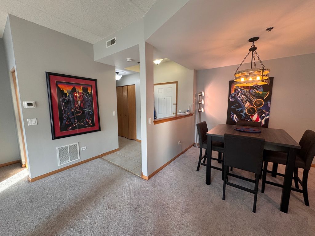 In a market saturated with compact one-bedroom layouts, this is something altogether different. Welcome to one of only eight residences of its kind in the entire Kimball Square community - a rarely available Ames model offering over 1,200 square feet of refined, open living. With just two of these expansive one-bedroom homes per building - and only four buildings total - opportunities here are uncommon and fleeting. Positioned on the elevated first residential level (above the secured entry and garage), this home offers both convenience and privacy. Select buildings within the development enjoy more secluded rear surroundings - a subtle but meaningful distinction for those who value tranquility. Inside, the residence unfolds with an effortless sense of scale and serenity. Nine-foot ceilings and an expansive open plan create a light-filled atmosphere rarely found in one-bedroom homes. A gracious living and dining area flows seamlessly into the modern kitchen, complete with granite countertops, stainless steel appliances - equal parts functionality and understated elegance. The primary suite is generously proportioned and has 2 closets. It is anchored by an impressive bath featuring a double vanity and abundant space - a luxury seldom found in this category. In-unit laundry with full-sized washer and dryer (installed Summer 2025) adds daily convenience. A new garbage disposal (February 2026) and a well-maintained HVAC system (AC installed 2019, regularly serviced) reflect conscientious ownership. Western exposure fills the private balcony with warm afternoon light, overlooking mature trees and offering a quiet retreat at day's end - sunsets included. Additional features include: * Heated garage parking with assigned space * Private storage locker * Secure, pet-friendly building * Professionally managed community * Walkable access to library, grocery, dining, parks, Pickleball courts and trails * Immediate access to IL-53, I-90, I-290, and I-355 Kimball Square is a community where residents tend to stay - a testament to its comfort, location, and design. Two of these rare Ames models transferred in 2025; historically, they do not circulate often. A standout value - this oversized one-bedroom offers lower monthly assessments than comparable units in nearby communities. For those seeking space without excess, privacy without isolation, and a home that lives well beyond its bedroom count, this offering stands apart. A refined primary residence. An ideal executive retreat. A rare opportunity.