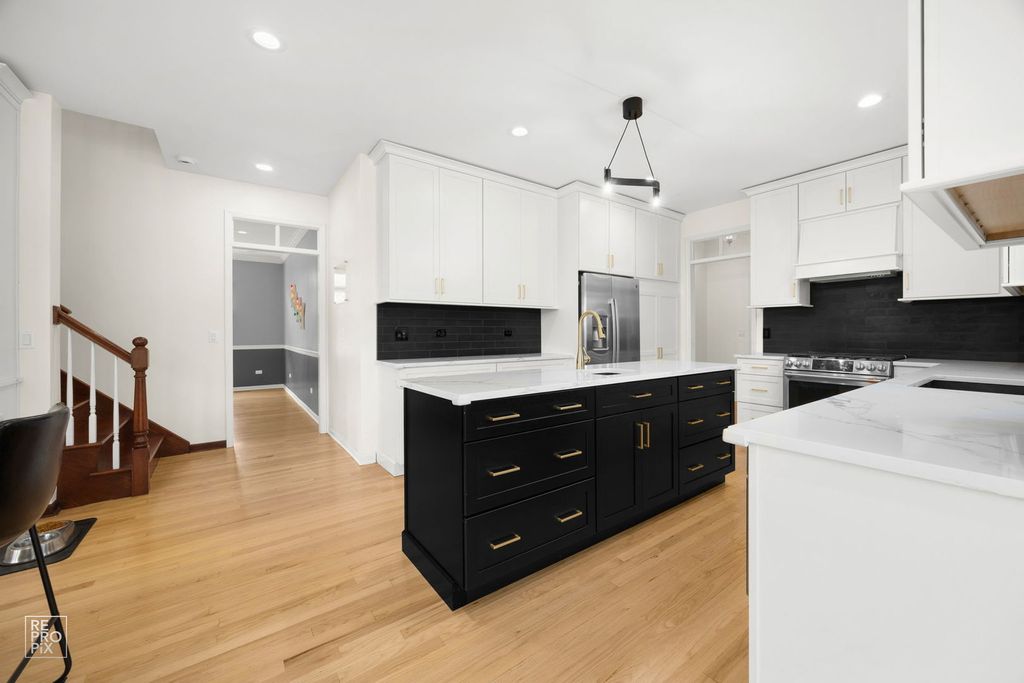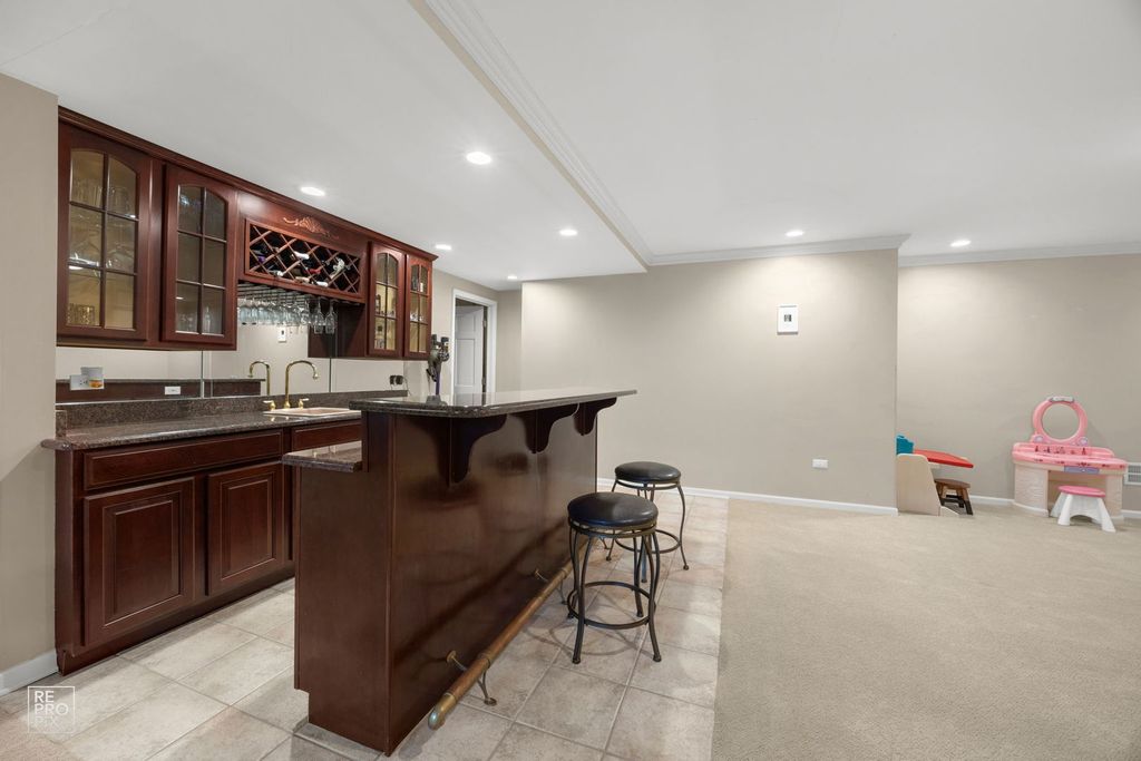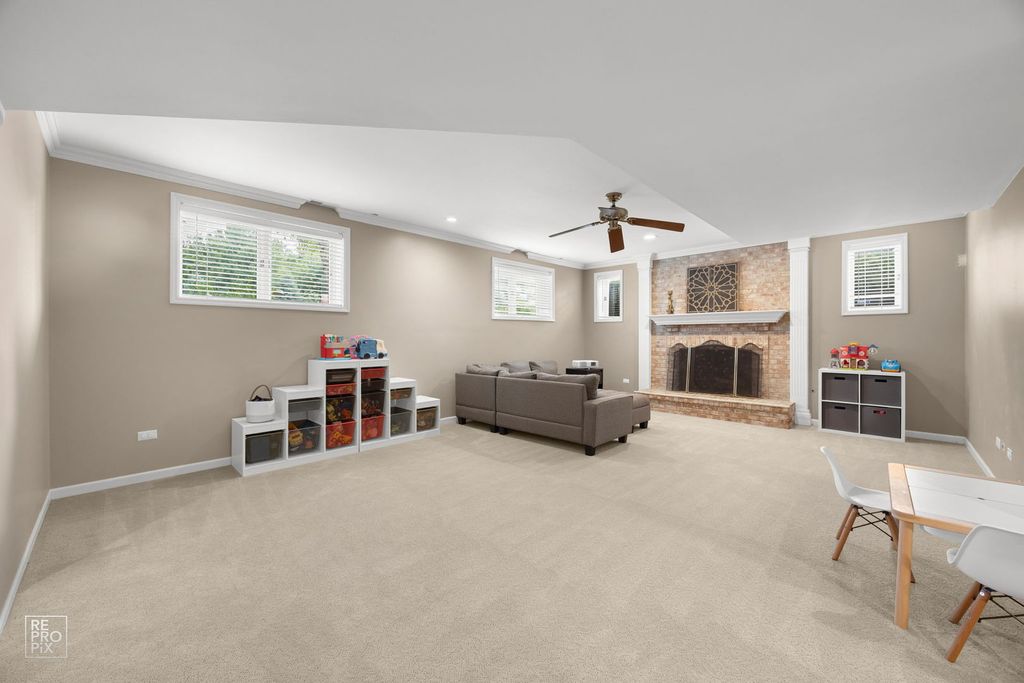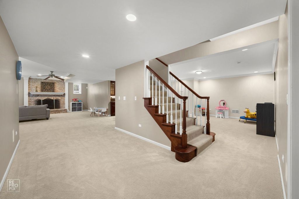 Discover an extraordinary residence where architectural grandeur meets contemporary sophistication within the desirable Red Gate Ridge subdivision, in the heart of St. Charles. This magnificent five-bedroom, five-bathroom estate spans an impressive 3,985 square feet of meticulously crafted living space, beginning with a breathtaking two-story foyer adorned with gleaming marble floors that set the tone for the luxury within. The culinary enthusiast will revel in the expansive new kitchen, featuring custom cabinetry and premium stainless steel appliances that transform meal preparation into an artful experience. Adjacent to this culinary masterpiece lies a spacious family room, complete with a warming fireplace that beckons for intimate gatherings and cherished moments. Retreat to the primary bedroom sanctuary, thoughtfully designed with an adjoining room, full bathroom, crackling fireplace, and an expansive closet that rivals a boutique dressing room. Throughout this exceptional home, upgraded flooring showcases elegant hardwood, refined vinyl, and plush carpeting that enhances the living experience. The entertainment possibilities flourish in the full finished basement, which houses a complete kitchen, bedroom, full bathroom, dedicated fitness space, and yet another fireplace-creating versatile living options or the ultimate entertainment venue. With three fireplaces total, warmth and ambiance permeate every season. The park-like backyard transforms outdoor living into a private oasis, while convenient parking ensures effortless daily living. Located near Primrose Farm Park, Saint Charles North High School, and Angelo Caputo's Fresh Markets, this remarkable property seamlessly blends luxurious amenities with practical convenience, creating an unparalleled living experience. The formal living room is currently being used as a home office, and the formal dining room is being used as a playroom.