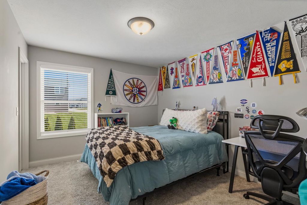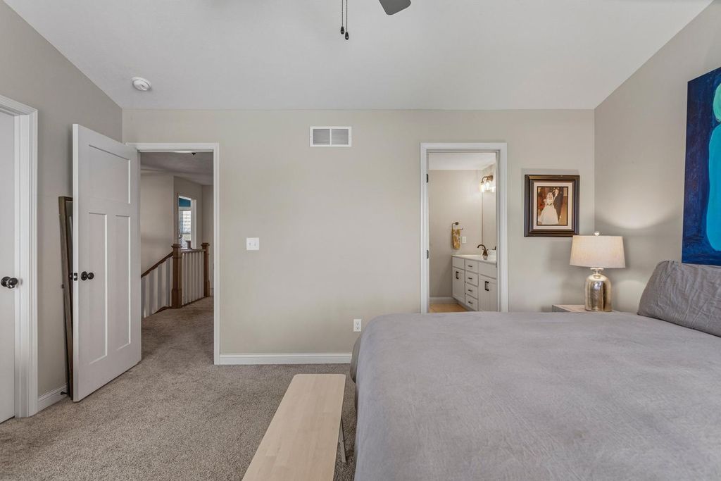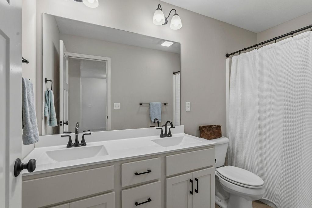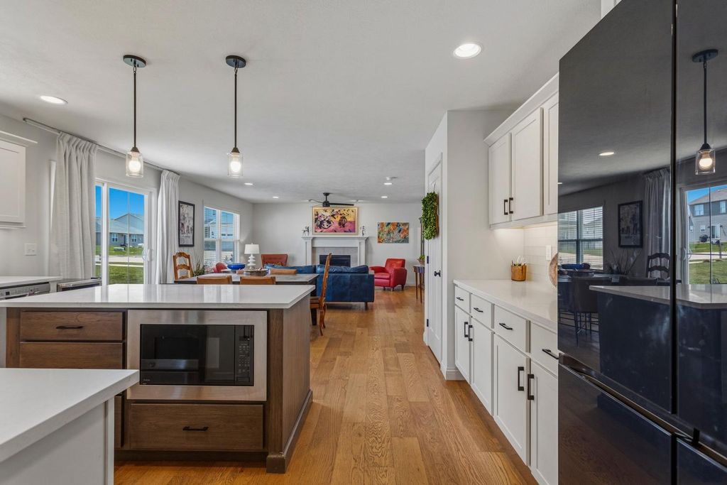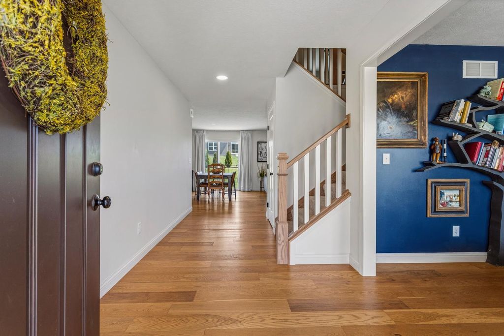 Built in 2022 and located in the desirable Hunter's Ridge Subdivision in Mahomet, this beautifully maintained home sits on a large corner lot with professional landscaping - an upgrade the sellers thoughtfully invested in - and offers 5 bedrooms and 3.5 baths, including a basement that was finished after closing as an added investment, now featuring a 5th bedroom and full bath. The welcoming floor plan offers an open-concept layout with a stunning kitchen showcasing cream-colored cabinetry, quartz countertops, and tile backsplash, flowing seamlessly into the living room highlighted by a cozy gas log fireplace and access to a large patio slab perfect for outdoor entertaining. The vaulted primary suite provides a spacious retreat with a walk-in shower and double sinks, while both upstairs bathrooms feature double vanities for added convenience. A functional back entrance from the garage and a half bath tucked behind the kitchen complete this move-in ready home that blends quality upgrades, space, and everyday functionality. View it today!