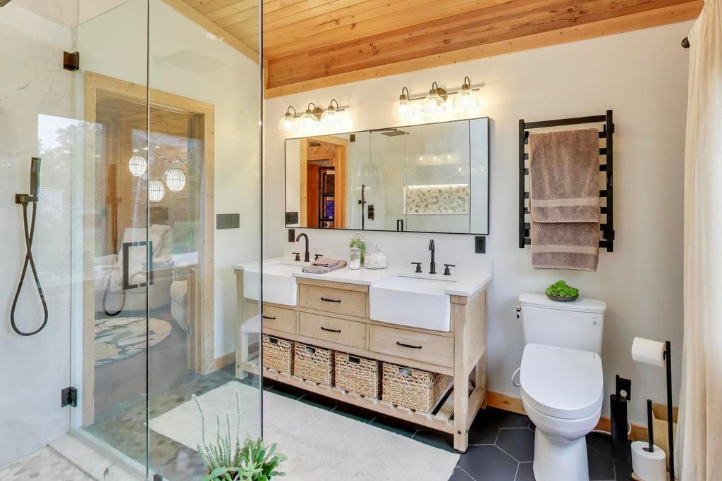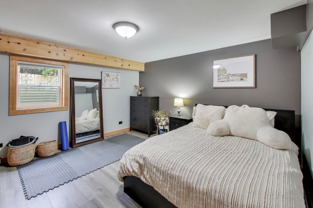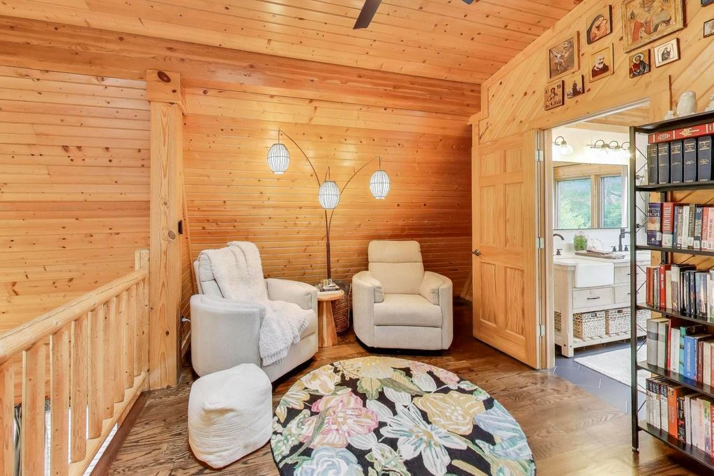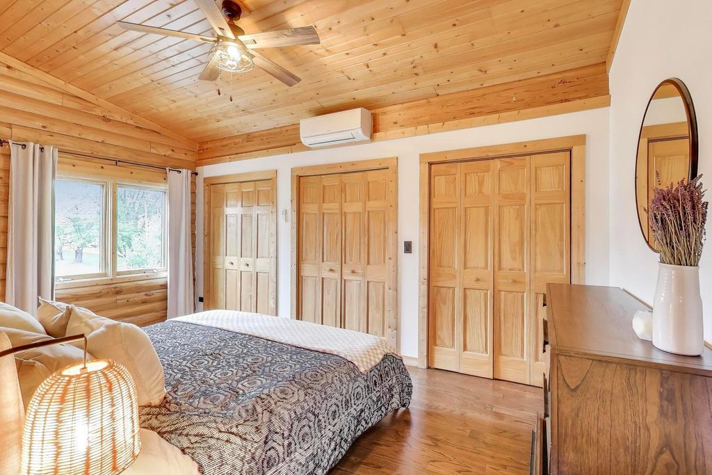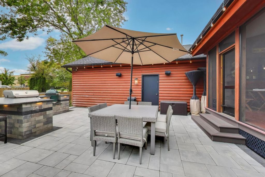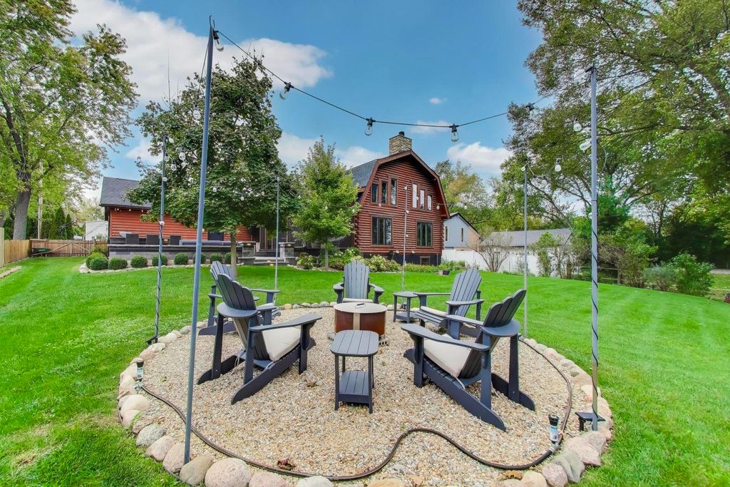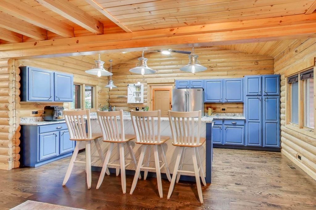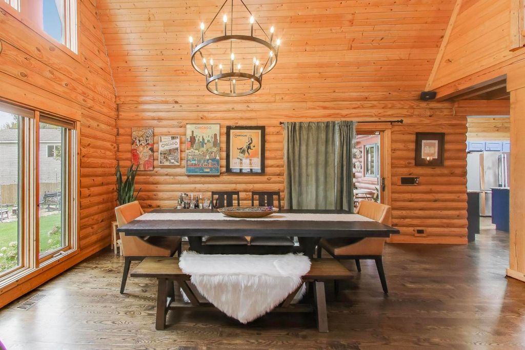 Tucked away on a quiet dead-end street in Palatine and located within the highly sought-after Lake Zurich School District, this custom-built 3-bedroom, 3-bath luxury lodge-style home sits on 1.5 private acres, offering exceptional privacy, space, and natural beauty. A circular driveway sets the tone as you arrive, welcoming you to a peaceful retreat with limited neighboring homes. Inside, you'll find a stunning open-concept layout featuring vaulted ceilings, rich knotty pine, two stories of windows overlooking the backyard, and a dramatic two-story stone fireplace that anchors the living space. The kitchen flows seamlessly into the living and dining areas, creating the perfect environment for both everyday living and entertaining. Step outside and enjoy the beautifully designed outdoor living areas, including a large patio, outdoor kitchen, professionally landscaped grounds, fenced yard, and a custom fire pit area. Major recent improvements include: new roof (2024), fully renovated primary bathroom (2024), hardwood floors & updated interior paint, outdoor kitchen, patio & professional landscaping, new fence & backyard fire pit area, water softener with reverse osmosis system, multiple new skylights. And that's just the beginning - there have been extensive updates throughout the home... truly too much to list! The finished lower level offers incredible flexibility with a bedroom, full bath, custom bar, entertainment center, and space that could easily accommodate a kitchenette - ideal for an in-law arrangement or extended living. A rare opportunity to own a private nature-inspired luxury retreat with modern updates in an unbeatable location close to shopping, dining, and major highways. This home has so much more to offer than can be captured here - it's a must-see.