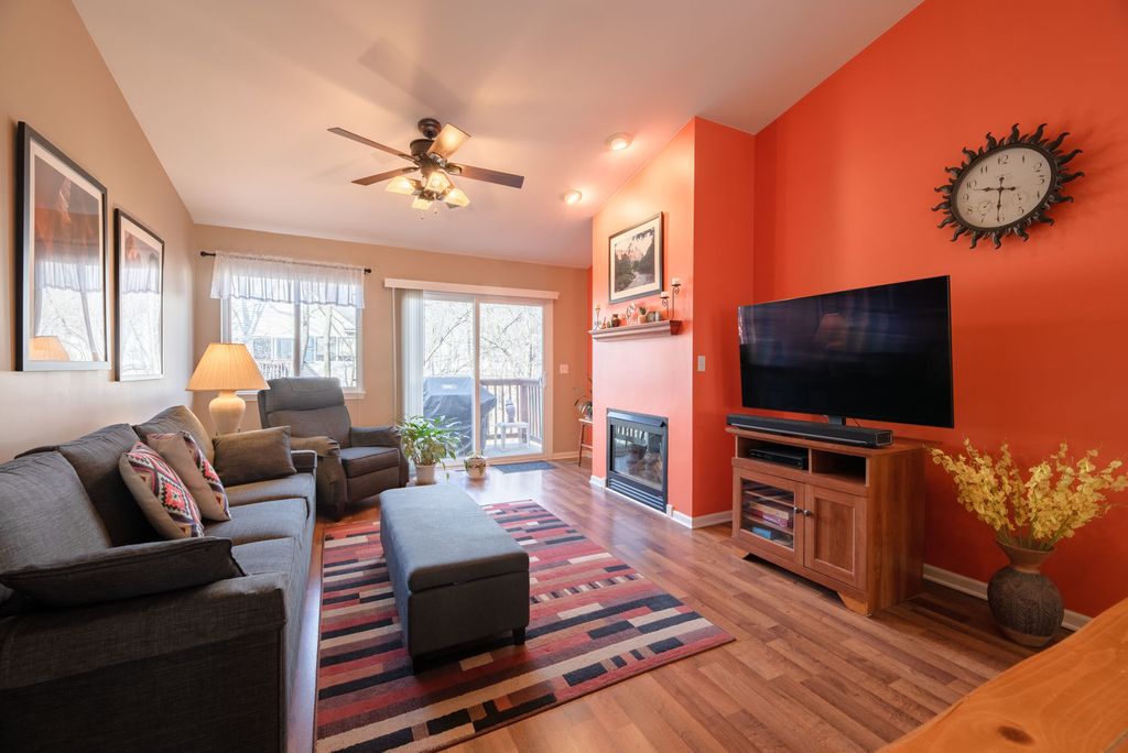 Tucked among mature trees in the highly sought-after Oaks at Hidden Glen, this sharp and contemporary townhome offers the ideal blend of privacy, comfort, and modern style. The main living level is designed for effortless everyday living and entertaining, featuring a spacious kitchen with breakfast area. Living/dining room with high ceilings and fireplace. Two bedrooms are located on this level, along with a full bath with double vanity. A sliding glass door opens to a private balcony-perfect for grilling or enjoying your morning coffee surrounded by trees. The walkout lower level expands your living space with a full third bedroom, an additional full bath, a generous recreation area and convenient laundry room. Sliding glass doors lead to peaceful wooded common area. Major exterior updates include a new roof and gutters (2022), offering peace of mind and long-term value. Ideally located just minutes from premier shopping, dining, and expressway access, this home delivers both tranquility and convenience. Surrounded by nature. Thoughtfully designed. Move-in ready. This is townhome living at its best.