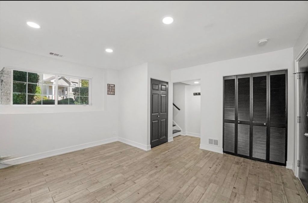 Well-maintained 3-story townhouse featuring 3 bedrooms, 2.5 bathrooms, and a 2-car attached garage. The main level offers an open-concept layout with a spacious living and dining area, ideal for everyday living and entertaining. The kitchen includes stainless steel appliances, quartz countertops, ample cabinet space, and access to a private balcony. The upper level features a primary bedroom with an ensuite bathroom and closet, along with two additional bedrooms and a convenient second-floor laundry room with washer and dryer. The lower level provides flexible space suitable for a family room, home office, or recreation area, plus additional storage under the stairs. Additional features include central heating and cooling. Located near shopping, dining, and major transportation routes.
