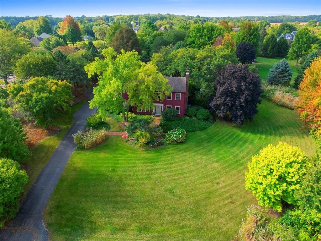 Beautiful St. Charles two-story home set on over 1.2 acres of professionally landscaped property, offering exceptional privacy while being just minutes from the Randall Road Corridor's top-rated shopping and dining, and located within the highly acclaimed St. Charles School District 303. A charming brick pathway surrounded by lush greenery welcomes you into over 3,700 sq ft of impeccably finished living space filled with timeless millwork, crown molding, and thoughtful updates throughout. The exterior (2025), interior, and trim (2026) have been refreshed with all-new paint, new garage doors for the spacious 2.5-car garage (2025), and a new furnace (2024). Step inside the foyer, where hardwood floors extend throughout the home, leading to bright, spacious interiors. A private first-floor office with French doors creates the perfect work-from-home space, while the formal living room with a wood burning brick fireplace offers an inviting space to gather. Just beyond, the formal dining room opens to a breathtaking four-season sunroom with cathedral ceilings, skylights, and a full surround of windows overlooking the serene backyard, perfect for reading, relaxing, or growing your favorite plants. The beautifully designed kitchen boasts granite countertops, ample cream cabinetry with glass-front accents, stainless steel appliances, including a new microwave and dishwasher (2025), an island with seating, and a reverse osmosis water filtration system. The oversized family room, highlighted by a dramatic floor-to-ceiling brick fireplace, creates a warm and inviting space perfect for relaxing and gathering. A convenient half bath and laundry room with a sink complete the main level. Upstairs, the spacious primary suite features a sitting area, desk space, and an enormous walk-in closet with built-in cabinetry and a center island. The ensuite bath includes dual vanities, a whirlpool tub, and a large walk-in shower with body jets. Three additional generously sized bedrooms all feature crown molding, ceiling fans, and ample closet space, and share a well-appointed full bath with tub/shower combination. The finished lower level offers incredible flexibility with a second family room, additional recreational space perfect for a game or workout area, and ample storage space, along with a cedar closet. Step outside to a true entertainer's dream. The private backyard oasis features expansive green space, a stunning multi-level brick paver patio, and a fully equipped outdoor kitchen complete with a built-in grill, cooktop, refrigerator, granite countertops, and bar seating. Whether you're hosting summer dinners, gathering around the fire pit, or enjoying yard games on the open lawn, this space is designed for effortless entertaining and everyday relaxation. Mature trees provide exceptional privacy, while a charming goldfish pond and storage shed add both character and convenience. Additional highlights include new carpet in two bedrooms upstairs (2024), electric shades in the family room and dining room, motion sensors for the security system, and an attic space above the garage for future finishing, perfect for a man cave, gym, or studio. A rare opportunity to own a beautiful 4-bed, 2.5-bath St. Charles home set on a private 1.2+ acre lot, offering exceptional indoor and outdoor living, peaceful surroundings, and a lifestyle that's increasingly hard to find.