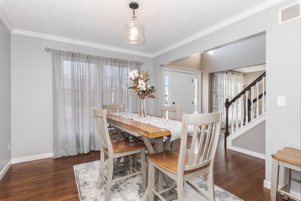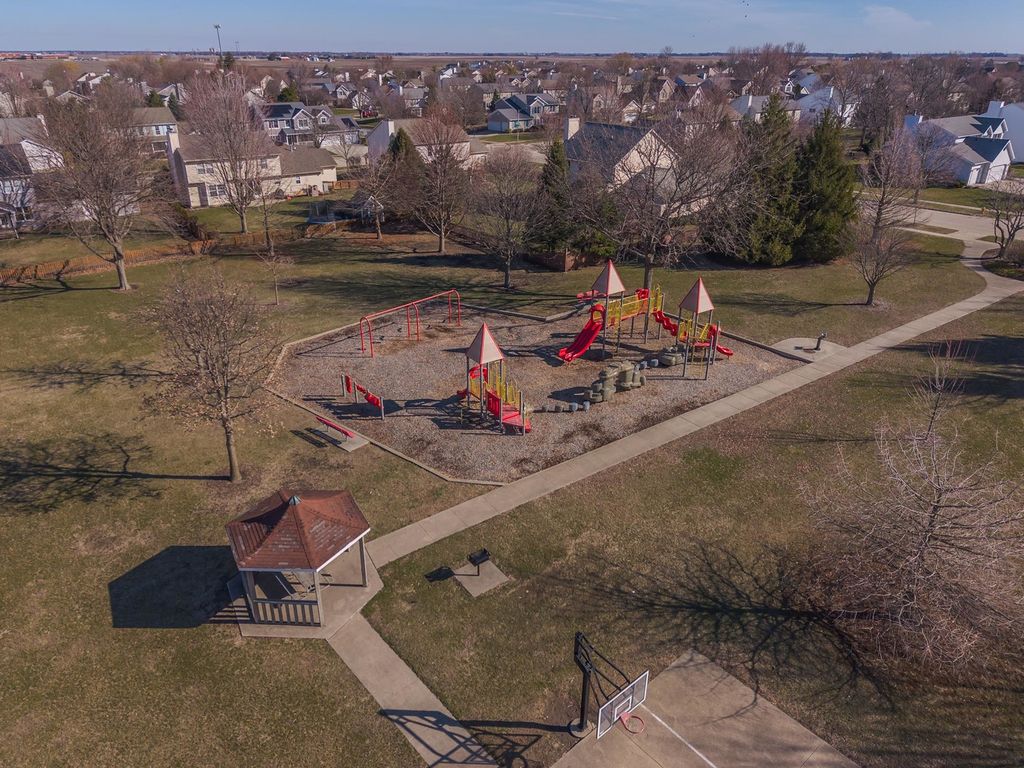 Beautifully updated and lovingly maintained, this all brick front traditional two-story home blends timeless style and modern comfort. The newly remodeled eat in kitchen features, quartz countertops, pantry, tiled backsplash, and quality finishes, opening seamlessly to the inviting family room with custom built-ins and a brick surround gas fireplace with mantle. Recent updates include newer carpet upstairs 2021, new garage doors 2020, refinished hardwood flooring, upgraded trim and baseboards, newer fixtures, paint and roof replaced in 2012. New HVAC installed December 2025. The dining room showcases crown molding and a separate living room provides additional flexible living space. Main floor mudroom with classic wainscoting adds charm and everyday convenience. Upstairs you'll find four spacious bedrooms, including a generous primary suite with a walk-in closet, double sink vanity, and a separate garden tub and shower. The finished basement expands your living space with a large family room, recreation area, flex room and full bath, ideal for guests or multigenerational living. Water back up sump pump and organized storage room with shelving for piece of mind and practicality. Step outside to a freshly landscaped yard with an aggregate patio perfect for entertaining, arborvitae trees providing privacy, and a neighborhood park just down the street completing the appeal of this exceptional home.