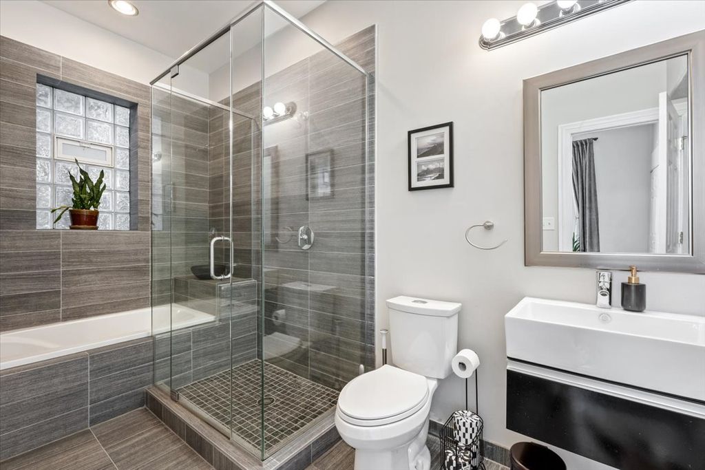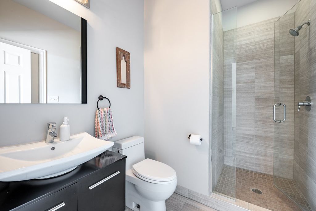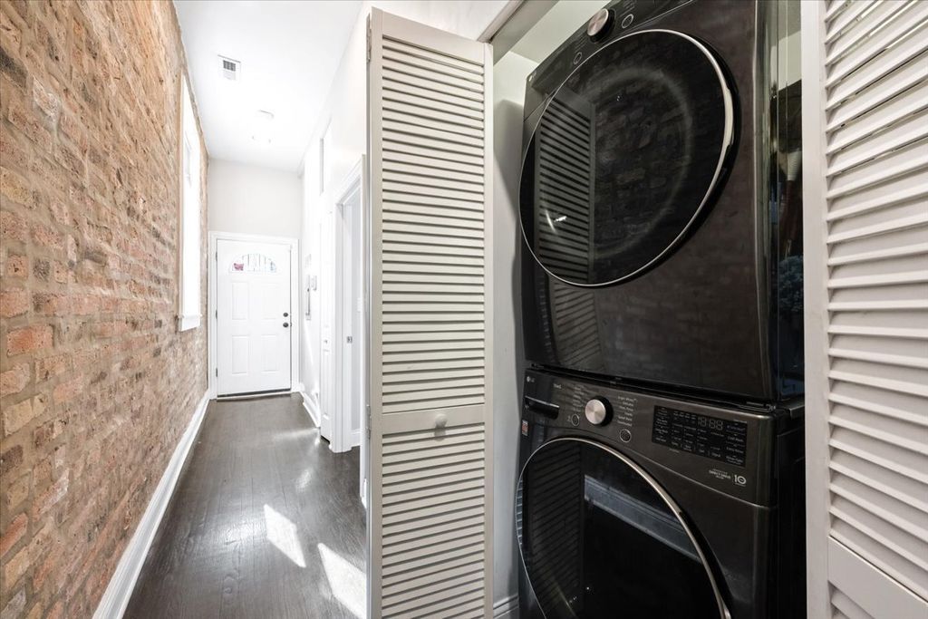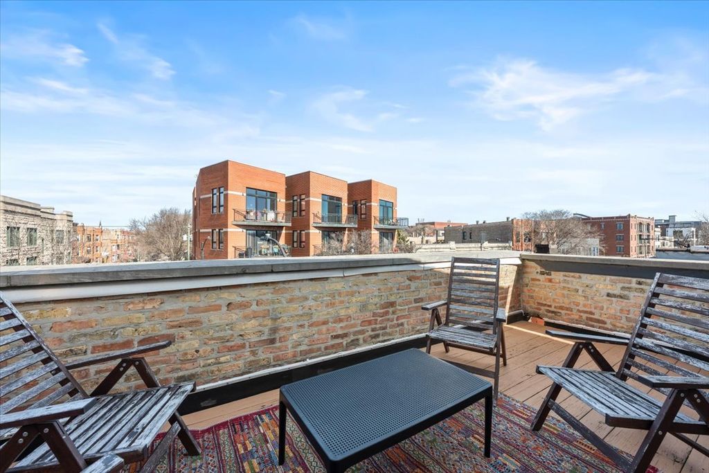 Welcome home to this sun-drenched duplex-up in West Town! Meticulously maintained, this home features a striking dark brick exterior and a bright, fully updated interior. Steps away from the 66 bus-line stop and some of the neighborhood's best restaurants, bars, and local hotspots. Inside, you'll find a spacious, open-concept layout with generous ceiling height, oak hardwood floors throughout, and exposed brick accents that add warmth and character. The home offers three generously sized bedrooms, each with its own en-suite bathroom, along with updated finishes throughout. Enjoy three separate outdoor living spaces, including a private sundeck off the primary suite overlooking Chicago Avenue. A beautifully landscaped backyard provides the perfect setting for summer gatherings, and two tandem parking spaces are conveniently located just outside the back gate. With low monthly assessments, all brick-building, and two floors of living, this exceptional property truly checks every box.