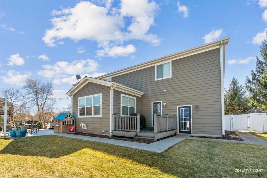 AMAZING TWO-STORY HOME LOCATED IN HIGHLY SOUGHT-AFTER SCHOOL DISTRICT 301! This 5-bedroom, 3 full-bath home has so much to offer. Step into the grand entryway featuring a formal dining room, living room, and stunning two-story foyer. The beautiful open-concept layout provides fantastic flow from the kitchen overlooking the family room and breakfast area, all filled with natural light. The main level 5th bedroom can be used as a fantastic home office as well if needed! The second level features four spacious bedrooms, including a huge primary suite and a versatile loft area. The fully finished basement adds even more living space with an additional family room and recreation room, perfect for entertaining, a home gym, or whatever fits your lifestyle. Enjoy summer entertaining on the beautiful brick paver patio with a pergola and hot tub all within a fully fenced backyard. Conveniently located just minutes from shopping, restaurants, and more! Seller would like to leave the hot tub, kids playset and basketball hoop. Hurry and schedule your showing!