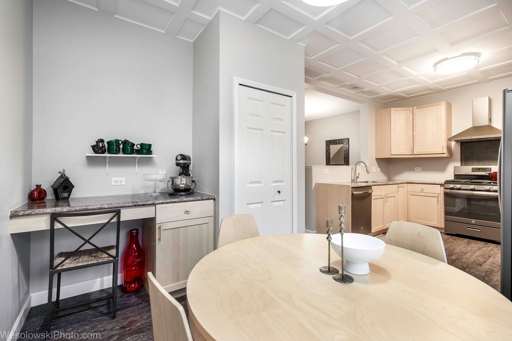Move-in Ready, Gorgeous and Modern 3-story Townhome featuring 3 Bedrooms, 2 1/2 Baths. Main level boasts half bath, hardwood floors, 9 ft ceilings, with open floor plan for dining area, living room and modern kitchen with spacious counters, stove venting outside, maple cabs and newer stainless steel appliances, pantry. Breakfast nook off kitchen has built in desk and opens to large deck- perfect for grilling and watching sunset. 2nd level features hardwood floors, 3 spacious bedrooms and 2 full baths, along with large side-by-side washer and dryer. Lower level is family or rec room with access to attached 2-car garage. Prime location in the heart of Mount Prospect minutes from the vibrant downtown area and convenient public transportation. Enjoy the privacy and feel of a single family home, near parks, shopping, restaurants and highly-rated schools.