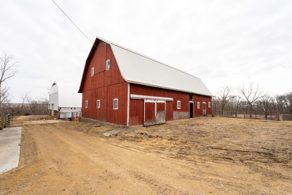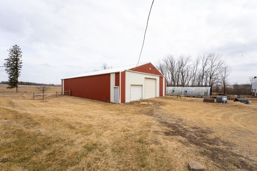 Set among the rolling hills of western Ogle County, this mixed-use farm checks a lot of boxes for buyers looking for a place to live, work, and enjoy the outdoors. The 3-bedroom 2-bathroom home sits up on the hill with wide views of the surrounding countryside. Inside, you will find a comfortable open floor plan with a main floor master bedroom and an office that works well for a home workspace or extra room. Upstairs are two additional bedrooms that provide plenty of space for family or guests. The basement has a wood burner that helps with heating efficiency during the colder months. Just off the house is a solid 30x28 two-car garage that provides plenty of room for vehicles and equipment. The outbuildings offer a lot of flexibility for a variety of uses. The 46x68 outbuilding is partially finished and heated, making it a great shop or workspace, while the remaining portion works well for cold storage. The 26x62 barn is in good condition with a metal roof and new wood planks in the loft. It is well-suited for livestock and sits right next to pasture ground. There is also a large 46x116 hoop building with water that adds even more utility for equipment, hay, or animals. The land features rolling contours with a mix of pasture, timber, and a creek running through the property. This area of Ogle County has a strong reputation for deer and turkey management and offers great recreational opportunities right out the back door. Whether you are looking for a country home, hobby farm, or hunting property, this one brings a lot to the table.