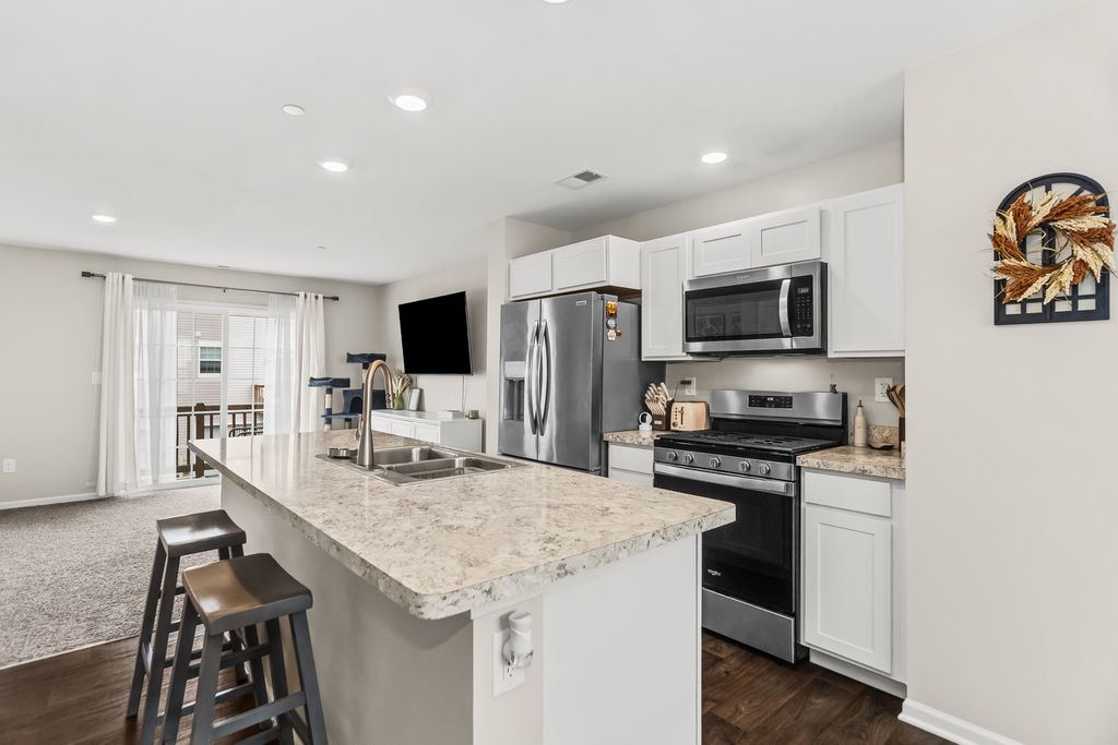 Truly move-in ready, making this better than new construction! Comfortable living that's designed for real life in this nearly new 1,579 sqft townhome with 2 beds+loft and 2.5 bathrooms. Entertain effortlessly in the open-concept main level where the kitchen sits center-stage between an oversized living room and a separate dining room overlooking the front lawn. The kitchen invites you in with all-white cabinetry, a French door refrigerator, stainless appliances, a pantry, and an extra-long island perfect for gathering. A powder room and spacious balcony perfect for grilling round out this floor. Upstairs, the king-size primary suite features a walk-in closet and ensuite bathroom with a walk-in shower. The second bedroom and flexible loft share a second full bath with a bathtub, and convenient top-floor laundry has a GE Profile side-by-side washer/dryer. The lower-level family room offers even more space to spread out or use as a flex room. Top it all off with built-in Smart Home Technology controlled from your phone and home touchscreen, new ceiling fans in the bedrooms, new window treatments throughout, a 2-car attached garage with extra storage, pet-friendly grounds, and professional landscaping. No need to keep searching, you've found the one!