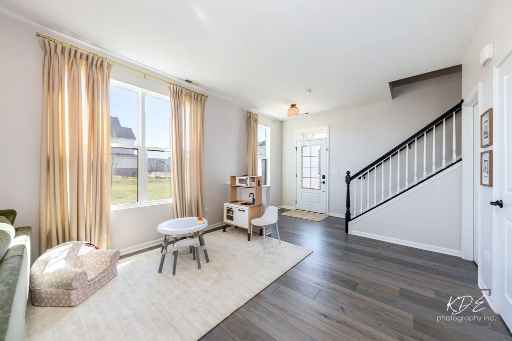 Welcome to one of the most sought-after townhome floorplans in Chelsea Manor! Built in 2022, this like-new end-unit offers exceptional privacy with a rare oversized open lot next door-creating the feel of your own additional yard-plus serene pond views. The bright, open-concept layout offers 3 bedrooms, 2.5 baths, and a two-car garage. The expansive great room, surrounded by windows and over 25 feet deep, flows seamlessly into a well-appointed kitchen with abundant 42" cabinetry, granite countertops, and a large pantry. A powder room and direct access to the oversized two-car garage complete the main level. Upstairs, you'll find two spacious secondary bedrooms, a full hall bath, and the convenience of second-floor laundry. The large owner's suite offers a private retreat with its own en-suite bath and walk-in closet. A standout opportunity combining newer construction, scenic surroundings, and extra outdoor space-located within the highly sought-after Naperville 204 school district and just minutes from shopping and dining. Move right in and start enjoying everything this beautiful home and community have to offer!