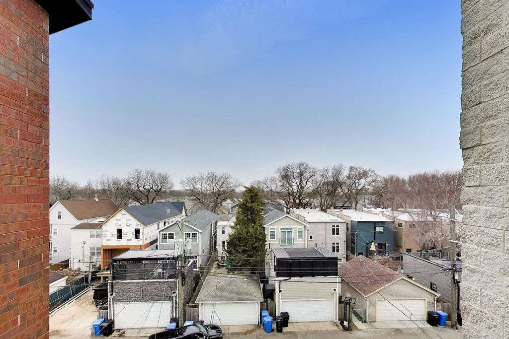Welcome to 1927 W. Belmont #4, an exquisite 3 bed/2 bath, TOP FLOOR residence in a well-maintained ROSCOE VILLAGE walk up. Bright and airy with a COMFORTABLE AND CLEAN STYLE, this home delights at every step and turn. Before entering the home you'll notice a thoughtful landing area large enough to host a 'mudroom type' set up where seasonal necessities like muddy boots, wet umbrellas, bulky winter jackets, etc can be conveniently stored. Once inside, you'll immediately feel the OPENNESS, TRANQUILITY and WARMTH that blankets the space. The inviting living room showcases the VAULTED/CATHEDRAL CEILING, a large WALL OF WINDOWS that fill the room with light, and a front facing JULIET BALCONY with picturesque, tree top views. A beautiful GAS FIREPLACE with a mantle and gorgeous wooden shelves in the nook next to the fireplace creates a warm focal point for the space with the solid hardwood floors adding beauty to the room as well. Adjacent to the living room is the generous dining area that can accommodate large dinners for friends and family celebrations. The OPEN LIVING AND DINING AREAS flow right into the LARGE KITCHEN, which features a BREAKFAST BAR/ISLAND, granite countertops, white cabinetry, stainless steel appliances, and plenty of storage. The openness of the layout makes this unit beautifully adaptable with a multitude of design options for the new owner. The SOUTH FACING PRIMARY BEDROOM is in the rear of the home and can accommodate a king-sized bedroom set. There's also a large, rear primary OUTDOOR BALCONY off the main bedroom to enjoy. As the seasons change you will even get to see the Willis Tower from time to time on your back balcony! The generously sized 2nd bedroom is almost as large as the primary bedroom and has ample closet space as well as a shared en-suite bathroom with double sinks and jetted soaking tub with shower. The 3rd bedroom is quite the bonus and is located next to a second full bath. It allows flexibility to meet your needs and can also present as a guest room, music room or home office as well! Additional highlights include IN-UNIT LAUNDRY with a stacked LG washer/dryer, additional STORAGE room on the first floor at the rear of the building, and 2 CAR TANDEM PARKING included in the rear of the building. EXCELLENT LOCATION with easy access to I-90/94, the Paulina Brown Line, nearby Red/Purple Line trains, and multiple bus routes. This home is ONE BLOCK TO DAMEN where you'll find FELLGER PARK, HAMLIN PARK (pool, fitness center, sports courts), the North Branch Chicago Riverwalk, Jimmy Thomas Nature Trail, dog park, and several playgrounds. Just blocks from Roscoe Village shops, restaurants, and neighborhood favorites. Responsible, friendly HOA, too!