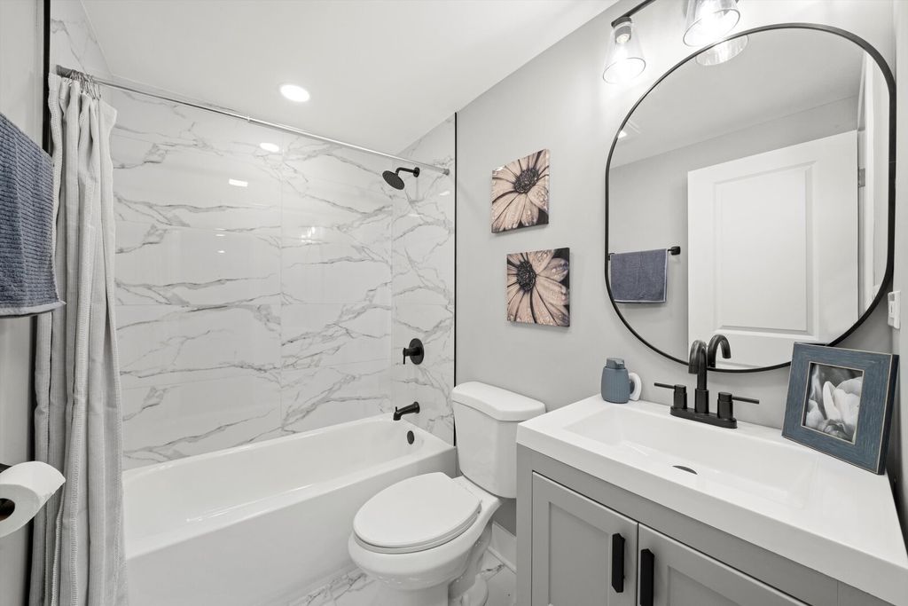 Welcome home to your 4 bed 2 bath brick raised ranch home. Fully rehabbed with all the bells and whistles, move-in ready! Enjoy having this open concept spacious living and dining room with refinished hardwood flooring throughout most of the main level. Cook your family meals in the BRAND NEW kitchen with white shaker cabinetry with black onyx hardware, quartz countertops, subway tile backsplash, and a convenient breakfast bar island. Brand new stainless steel appliances to finish the look. There are four generous sized bedrooms on the main floor, two that have walk-in closets. Brand new bathroom with meticulous tilework and vanity. Head down to the fully finished basement with painted black exposed ceilings, brand new vinyl flooring, plenty of entertaining space and a full bathroom. Separate laundry and utility space and plenty of storage. Backyard has a newly built 20 by 20 Parking Pad for parking 2 cars with a Double gate access that can be easily converted into a full enclosed garage and additional space perfect for outdoor BBQ's and bonfires. Call & schedule your showing today!