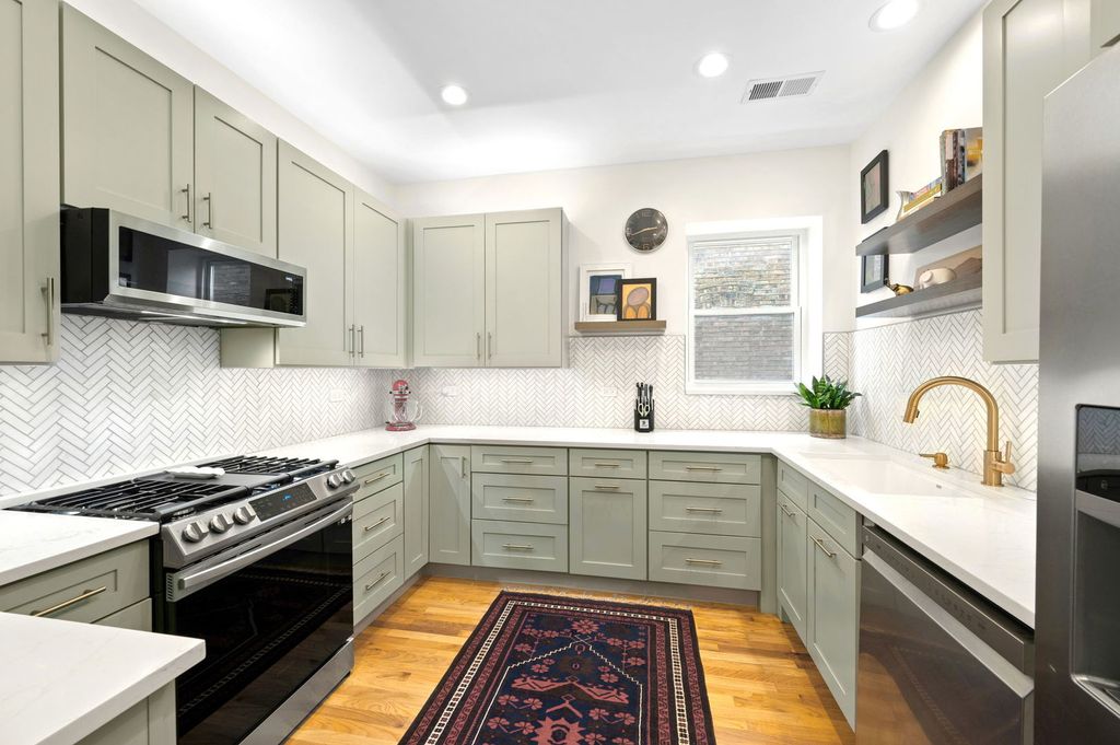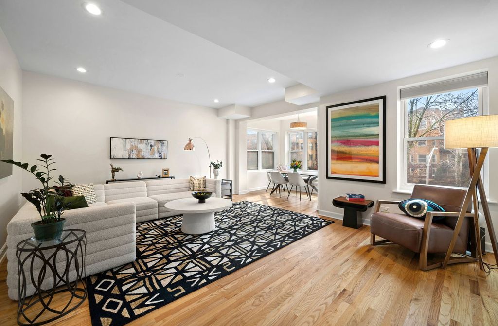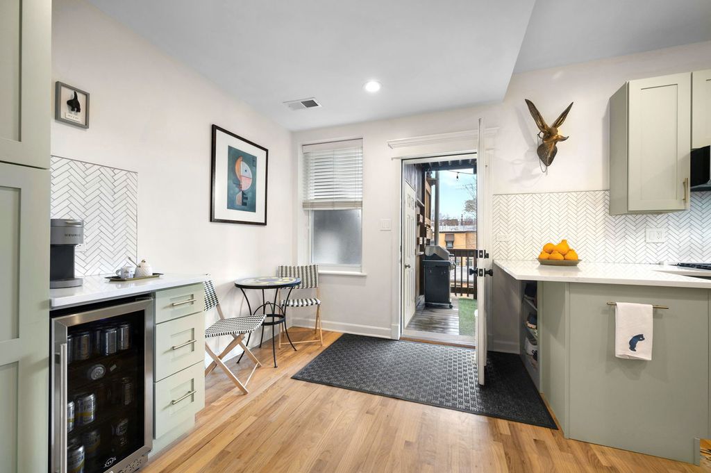 Welcome to Beacon Street, where this stunning, fully renovated home shines with thoughtful design and sun-filled living spaces. Gorgeous eat-in kitchen is the heart of this home, featuring abundant custom cabinetry, striking quartz countertops, and new stainless appliances. A classic herringbone tile backsplash and warm brass fixtures add character while open shelving keeps the space light and inviting. This enviable kitchen has open breakfast area for casual seating and room for a table. A separate beverage station with refrigerator and pantry with pull-out shelving adds convenience and storage - works equally well for coffee and cocktails. The impressively sized living room features a stylish built-in entertainment center that anchors the space. Just beyond, the sun-drenched former sunroom has been fully opened to create a bright and inviting space with custom built-in seating and concealed storage, perfect for dining or a dream work-from-home setup. Both generously sized bedrooms easily accommodate king sized beds plus additional furniture with ample closet space. The primary bedroom includes a beautifully remodeled ensuite spa-like bath with walk-in shower, quartz topped double vanity, exquisite soaking tub, and a dramatic wall of ocean blue tile, as well as very large organized closet. The second bathroom is also fully renovated with elegant tilework and a large glass enclosed shower and modern vanity. Just off the kitchen, the jumbo back deck offers plenty of space for seating, dining, grilling, urban gardening or relaxing on long summer evenings. Walk (or bike) to the lake front, Andersonville, and Lincoln Square while steps from historic entertainment venues like the Green Mill and Riviera Theater, and plenty of restaurants, coffee shops and night time fun, and nearby Metra and CTA stops. Move right in before summer and enjoy this almost new home in a classic Chicago building. Option to purchase fully furnished for true turnkey opportunity. Definitely not one to miss!