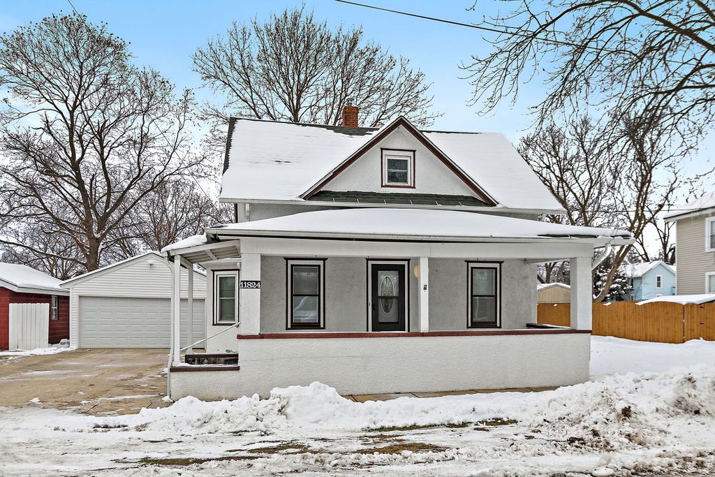 Wonderful Frame Stucco Bungalow tucked along a beautiful tree-lined street in the heart of historic Hebron. An inviting small-town setting close to the Illinois-Wisconsin border. This charming home offers wonderful curb appeal with its spacious 8x24 front porch, long concrete side drive which measures 20x40 in size, 2.5-car detached garage, and a generously sized backyard with an additional side yard for outdoor enjoyment. Step inside to a large living room that flows naturally into the dining room, highlighted by an octagon bump-out and rich woodwork that carries throughout many rooms. The nicely sized kitchen features classic oak cabinetry and plenty of space for a table. The first floor includes a cozy Den/Home Office/Sitting room with washer and dryer, along with a convenient full bath featuring a stand-up shower. Sitting room provides access to the second level, where you'll find two bedrooms one is the master bedroom and an oversized shared full bathroom. 2nd floor also boast a 13x11 family room which could double as a tandem 3rd bedroom. A full basement offers great storage and holds the updated mechanicals (ages unknown). The home has been well-maintained over the years and is move-in ready, with opportunities to update and make it your own. Come take a look and make this Hebron home yours!