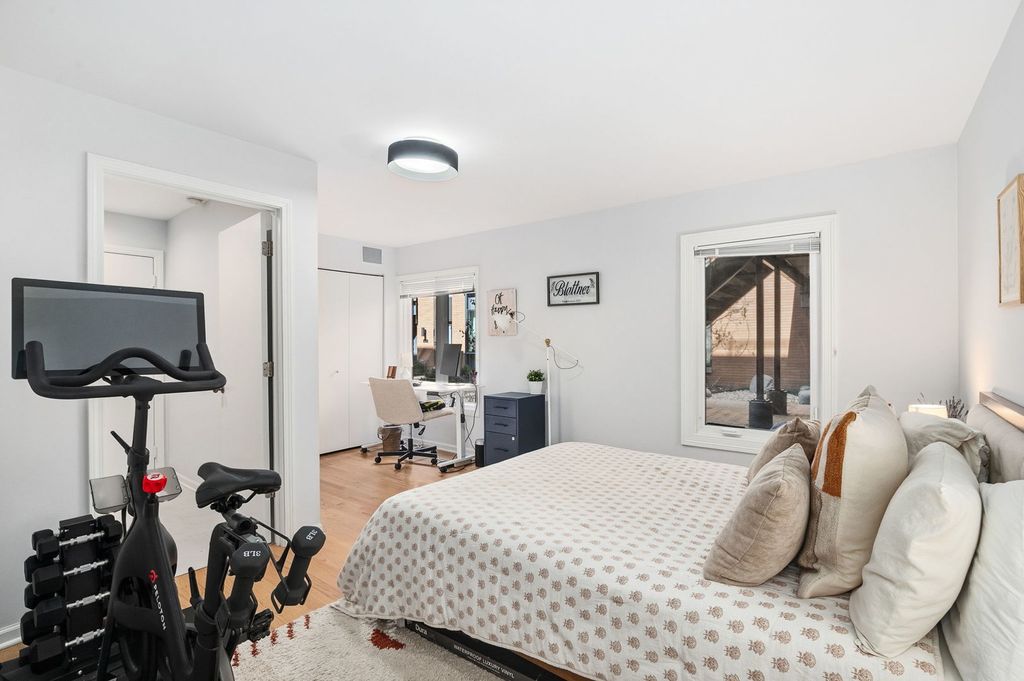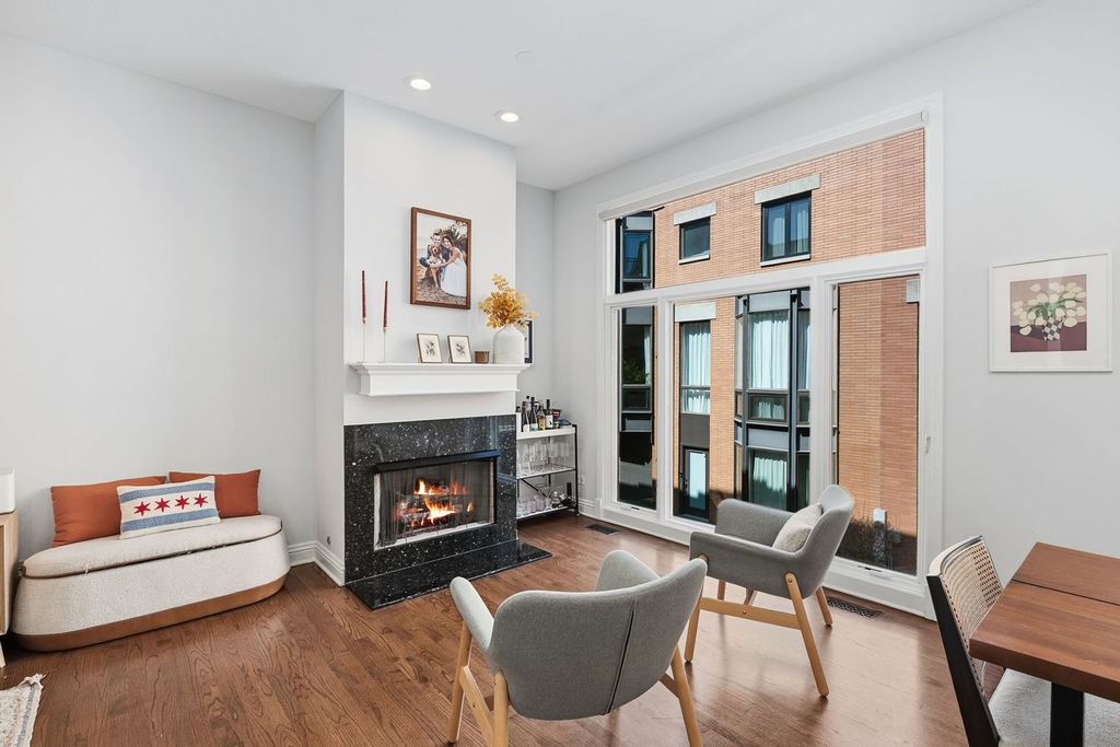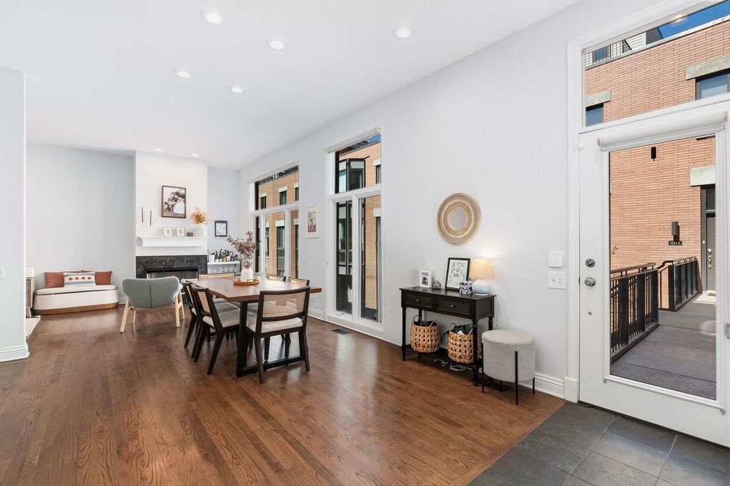 Beautifully updated 3-bedroom, 3-bath townhome in the sought-after Cleveland Court community in Old Town overlooking a quiet interior courtyard. This sun-filled home offers three levels of living plus a private rooftop deck with stunning skyline views. The main level features soaring ceilings, hardwood floors, a fireplace, and floor-to-ceiling windows that fill the space with natural light. The updated kitchen includes granite countertops, and stainless steel appliances, and new sink and faucet, flowing seamlessly into the living and dining areas-perfect for entertaining. The flexible first level includes a spacious room and full bath ideal for a guest suite, office, or media room, along with an attached garage and in-unit laundry. Upstairs are two generously sized bedrooms, including a primary suite with walk-in closet and updated bath, while the second bedroom features its own ensuite bath. Unbeatable location just moments from Wells Street dining and nightlife, the Sedgwick EL Station, shopping at NewCity and the Clybourn Corridor.