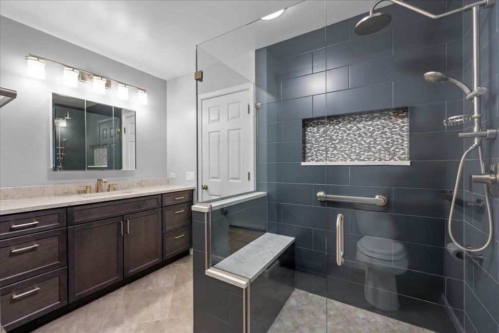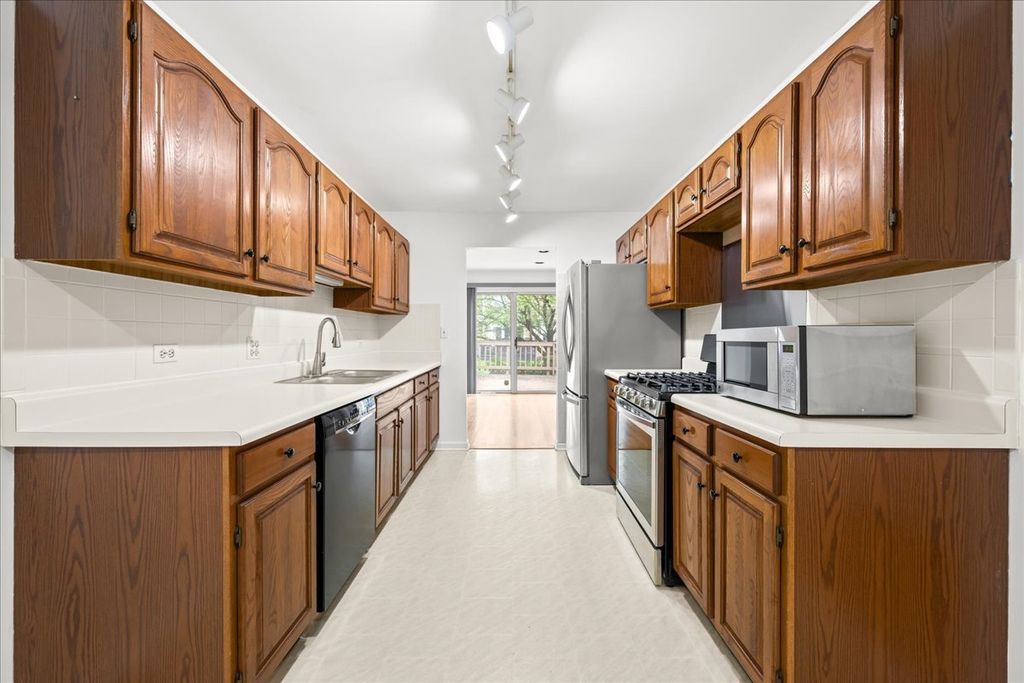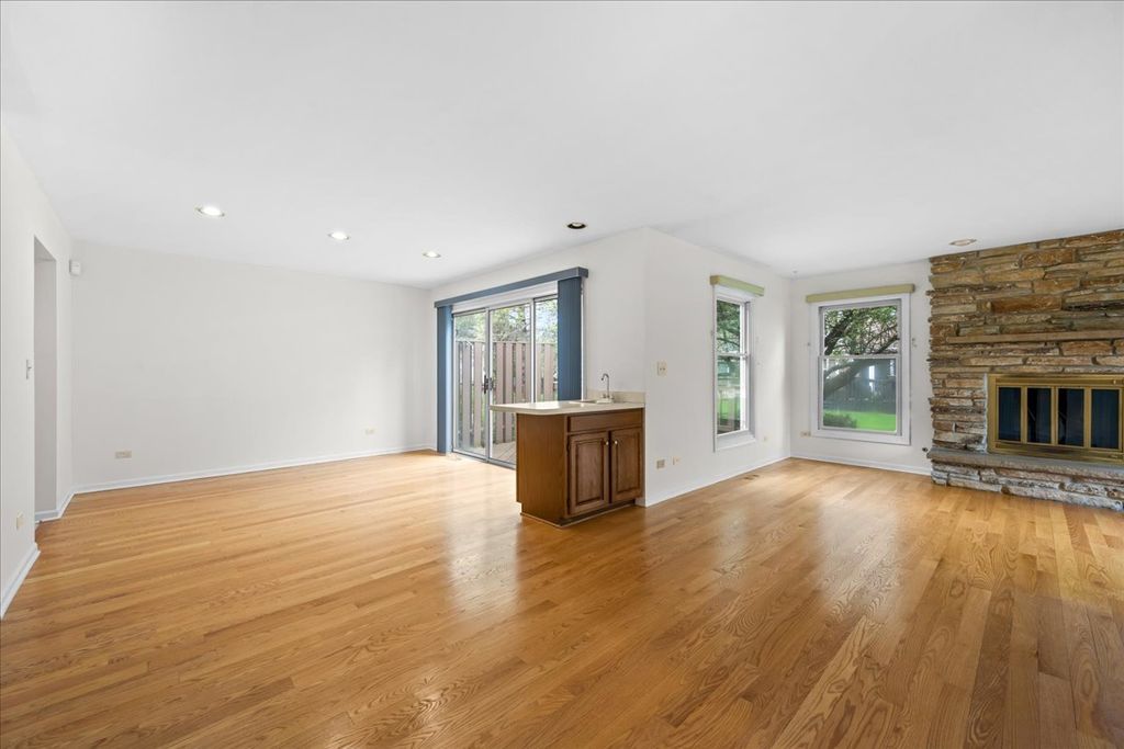 Located in the highly sought after Sutton Place and within award-winning Stevenson High School district, this gorgeous sun-filled 2-bedroom, 2-bath ranch townhome offers sophisticated single-level living at its finest. The main level features beautiful hardwood floors, convenient first-floor laundry, and a fully renovated primary bathroom. The inviting living room boasts a cozy gas fireplace and flows seamlessly into a spacious dining area and an eat-in kitchen complete with stainless steel appliances. An expansive basement provides additional living and incredible storage space, including a partially finished recreation room, perfect for a home office, gym, or entertaining. An attached two-car garage adds everyday convenience in this prime location. Don't miss this gem!