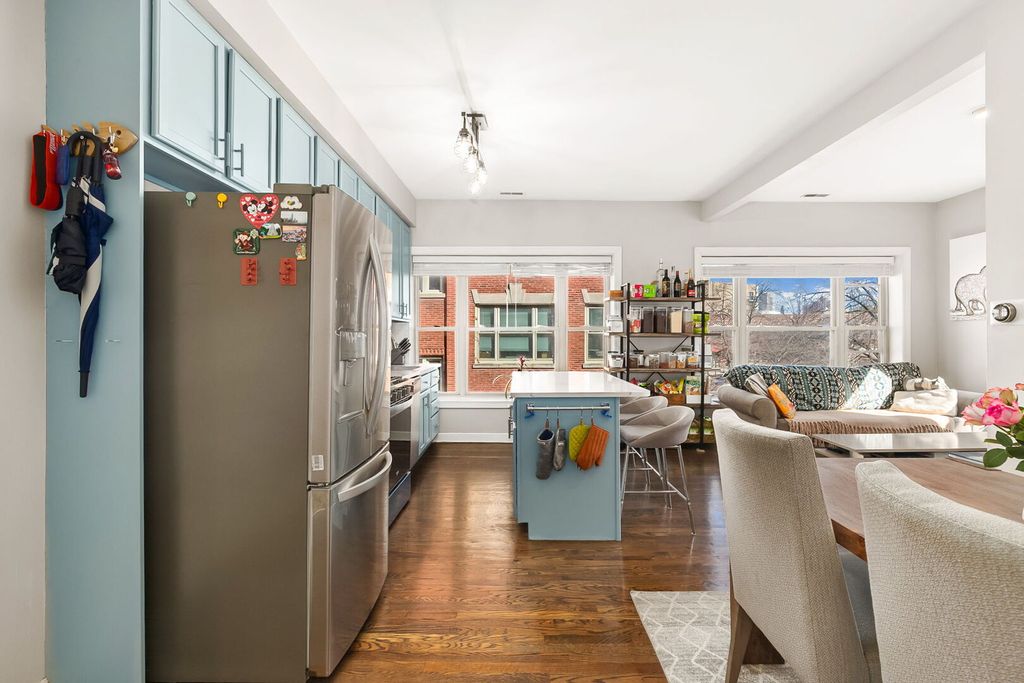 Welcome home to this charming and beautifully renovated 2 bedroom, 2 bathroom front facing corner unit in an unbeatable Uptown location! Nestled in a well maintained and beautifully landscaped courtyard building, this sunny second-floor corner unit offers the perfect blend of character, comfort, and convenience. The beautifully updated kitchen features new quartz countertops and backsplash, brand new stainless steel appliances, professionally refinished cabinetry, and a center island with breakfast bar seating, all opening seamlessly to the sun-drenched living room. Anchored by a cozy gas & wood-burning fireplace, the living space also includes a separate dining area ideal for everyday living and entertaining. The generous primary suite offers a peaceful retreat with a completely renovated ensuite bath showcasing stunning tile work. Both bedroom closets have been upgraded with custom Elfa build-outs, and the second bathroom has also been tastefully updated. Gorgeous refinished oak hardwood floors run throughout the home, adding warmth and timeless appeal. Retreat to your expansive deck - perfect for relaxing on a nice day, grilling out, or entertaining! Additional highlights include a new high-end front-loading in unit washer and dryer, as well as a new furnace, AC, and water heater. One deeded gated outdoor parking space and an enormous 8 ft. x 10 ft. private storage room are included in the price. Unbeatable location tucked away on a quiet tree-lined street yet close to all the incredible attractions this vibrant neighborhood has to offer - with Montrose Beach, the iconic Aragon Ballroom, easy transit access, and endless incredible dining and entertainment options all just steps from your door. Truly turnkey and checking every box, this is Uptown living at its best!