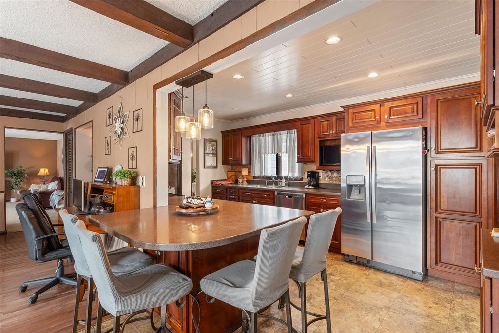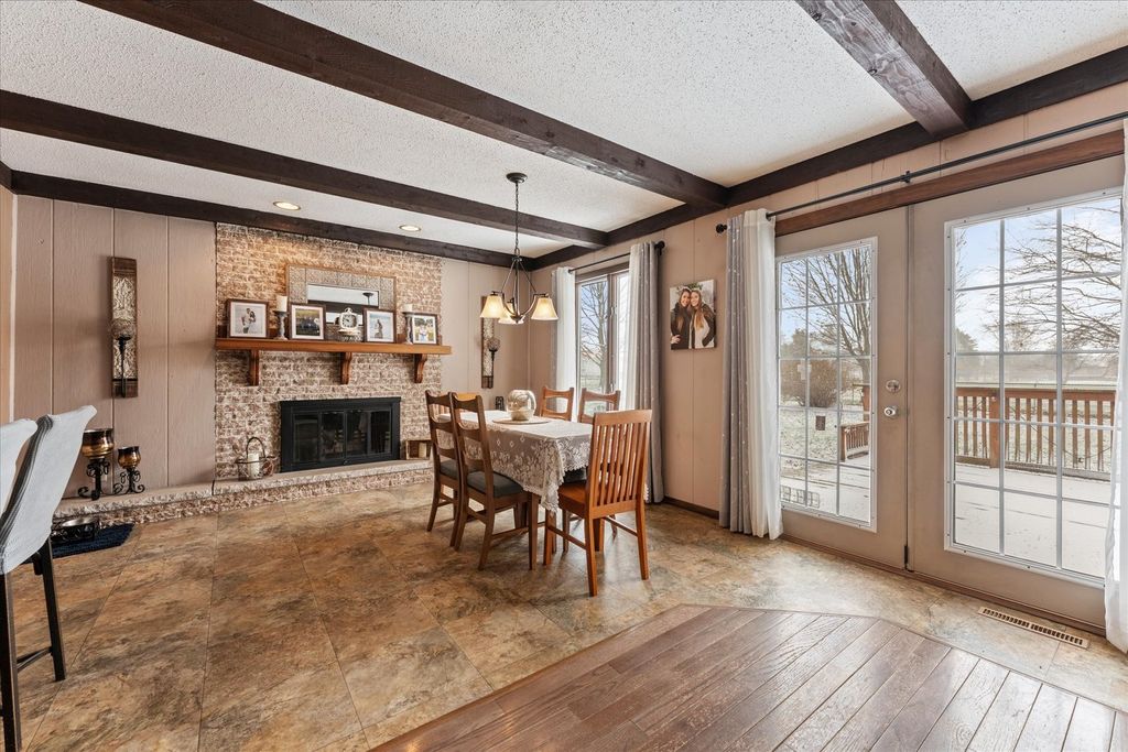 This charming 4-bedroom, 2.5-bathroom ranch offers 1,930 sq. ft. of comfortable living with two spacious living areas, including a cozy family room featuring a gas fireplace. The updated kitchen boasts stainless steel appliances, quartz countertops, ample cabinet space, and vinyl tile flooring, perfect for cooking and entertaining. Step outside to enjoy a stamped patio, a deck overlooking the fenced backyard, and a garden shed-ideal for outdoor gatherings, gardening, or relaxing in a private setting.
