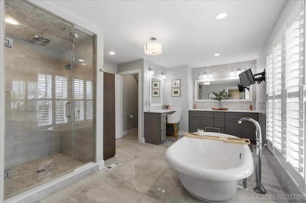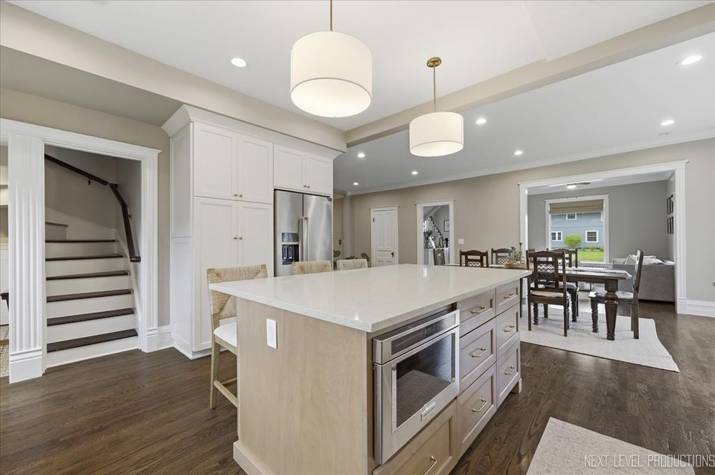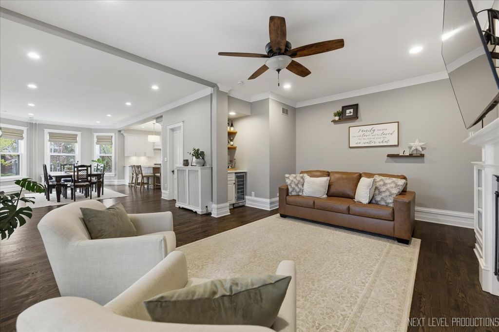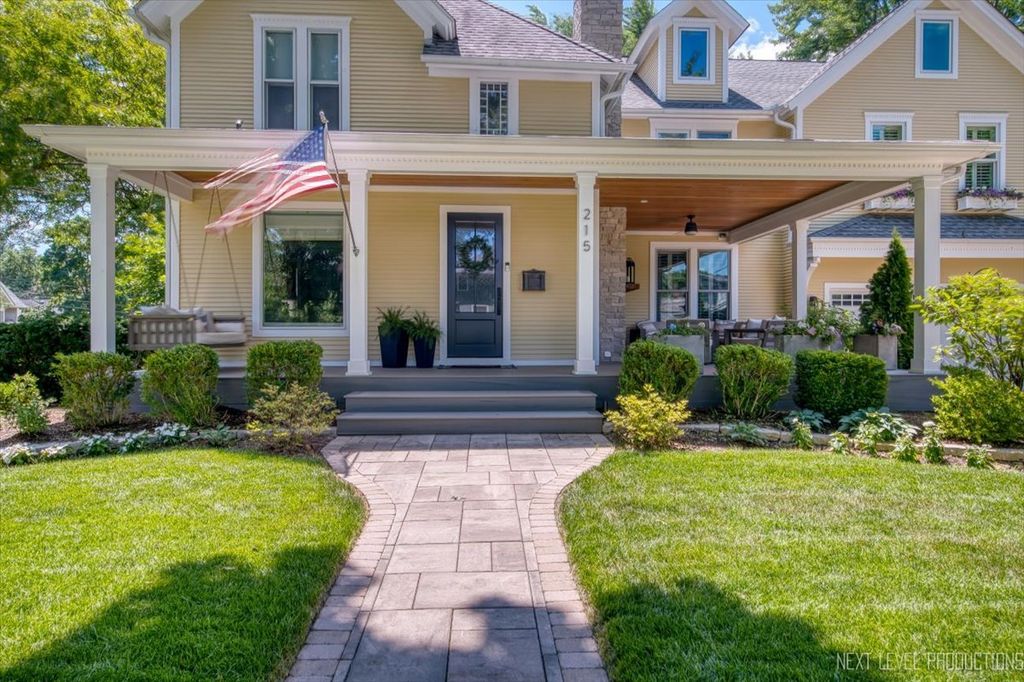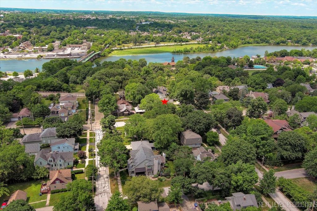 Showings begin Friday April 17th~Nestled in the heart of downtown St. Charles, just steps from the Fox River, this charming vintage home offers the perfect blend of historic character and modern luxury. With over 4500 square feet of living space, this expansive residence has been thoughtfully renovated to meet today's trends while preserving its timeless charm. Boasting 5 spacious bedrooms and 3 1/2 baths, the home provides an ideal balance of functionality and elegance ~ The newly remodeled kitchen (2024) is a standout, featuring Brakur custom cabinetry, quarzite countertops, porcelain backsplash and kitchenaid stainless steel appliances. The open concept design seamlessly connects the kitchen to the formal dining area, and living room, making it perfect for entertaining. Gleaming hardwood floors, intricate crown molding, 10" baseboards and original architectural details throughout the home create a warm and inviting atmosphere. The primary suite is spacious offering a relaxing sitting area with fireplace, and a professionally organized walk in closet~ The primary bath is so elegant with porcelain flooring, marble shower, a soaker tub and dual bowl vanity with full marble backsplash. There are 4 additional bedrooms on the second floor, a hall bath with marble flooring & custom vanities, and the laundry room. There is also a second/rear staircase that leads down to the kitchen for convenience~ The third floor offers a huge bonus room ( 31 X 25 ) with new carpeting, allowing many uses for the space, as well as a large storage closet~ All bedrooms, laundry and mud rooms have custom closets~ The recreation area is located in the finished basement and also hosts a half bath ~ Large windows fill the home with natural light, presenting stunning views of the surrounding Pottawatomie neighborhood and the tranquil Fox River. Whether you're relaxing in the cozy family room with a classic fireplace or hosting gatherings on the beautiful front porch around the stone fireplace, this home exudes both comfort and sophistication. A perfect fusion of old-world charm and contemporary updates, it is truly a unique gem in a coveted location.