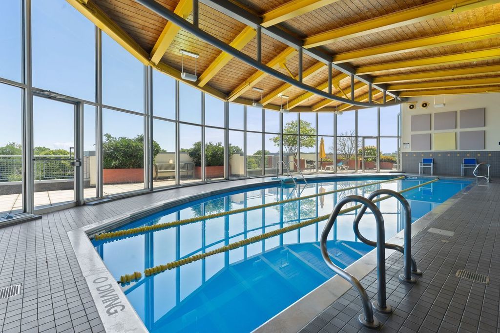 Enjoy living in a south facing unit with its own balcony. Fourth floor units have a higher ceiling than the rest of the building. The living area has room for a dining table, and the kitchen has a breakfast bar for more casual dining. The bedroom has great walk-in closet space and also has south views. Enjoy the convenience of owner-controlled heat and air conditioning, plus in-unit washer and dryer. Carpeting was replaced two years ago. The unit includes a heated parking space (184) and a storage locker on the upper garage level. The driveway is heated for easy winter access. The complex has an indoor pool, exercise, and party rooms, whirlpool plus sundeck. Basic extended cable and internet are included in the assessment. Dempster/Chicago Avenue offers easy acce ss to transportation with Purple Line around the corner and Metra 3 blocks away. Shop for food at nearby Jewel and Trader Joe's. Great restaurants, coffee shops and gelato are nearby, also a bike shop, jewelry stores and pottery shops. Lake Michigan is four blocks away.