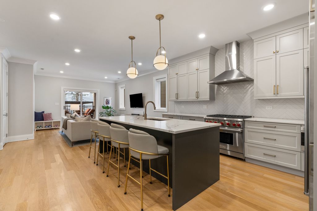 Outstanding newer construction duplex up built in 2020 by Barrett Homes, located on tree-lined one-way street in Burley School District, steps to everything along Lincoln Avenue and the Southport Corridor. This 3bed/2.1 bath home includes two garage parking spaces and a customized roof deck from Chicago Green Design. Featuring elevated finishes throughout, the large professional grade kitchen is outfitted with Subzero Refrigeration, Wolf Range, and butler's pantry containing beverage center. The open floor plan flows seamlessly to great room leading out to private covered deck. Inspiring primary suite contains spa bath with steam shower, soaking tub, walk-in closet and secluded walk out deck. Additional highlights include custom window treatments, oversized crown molding and trim, and laundry center with storage. Welcome Home.