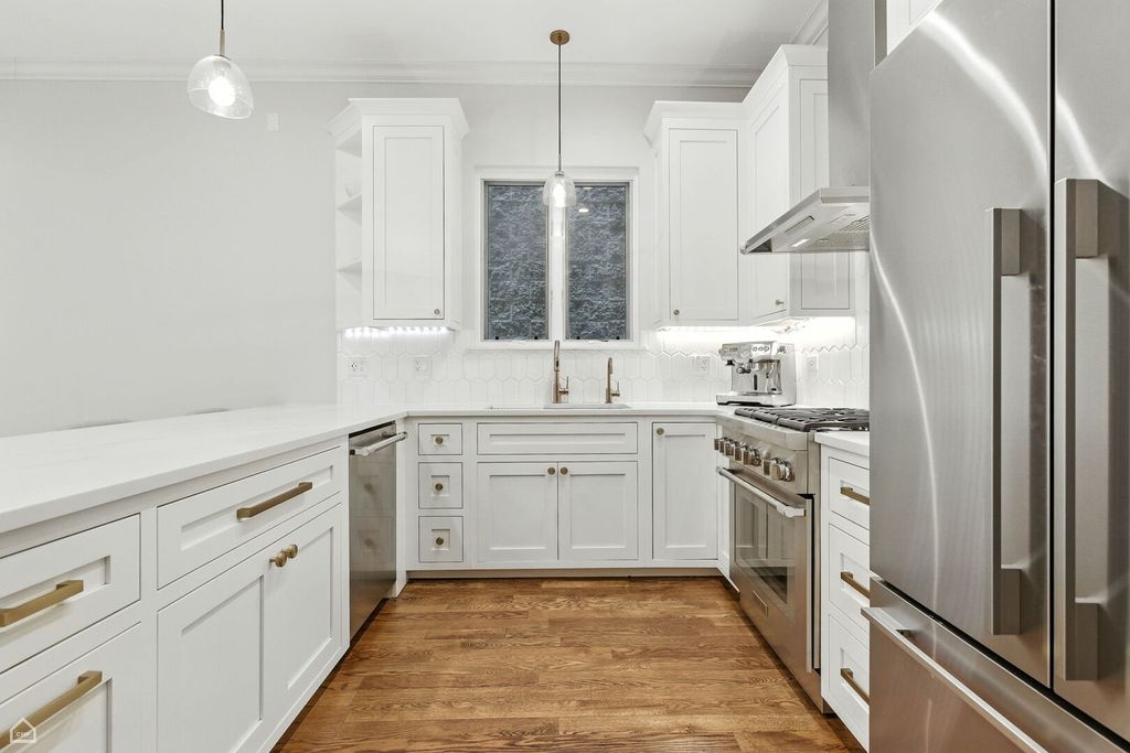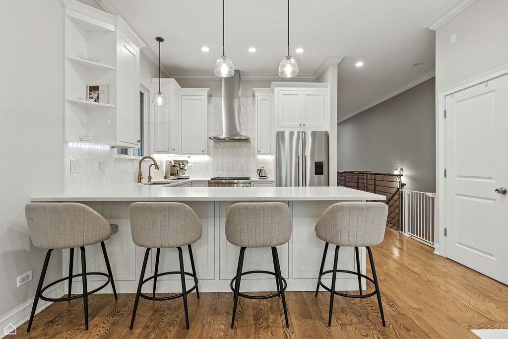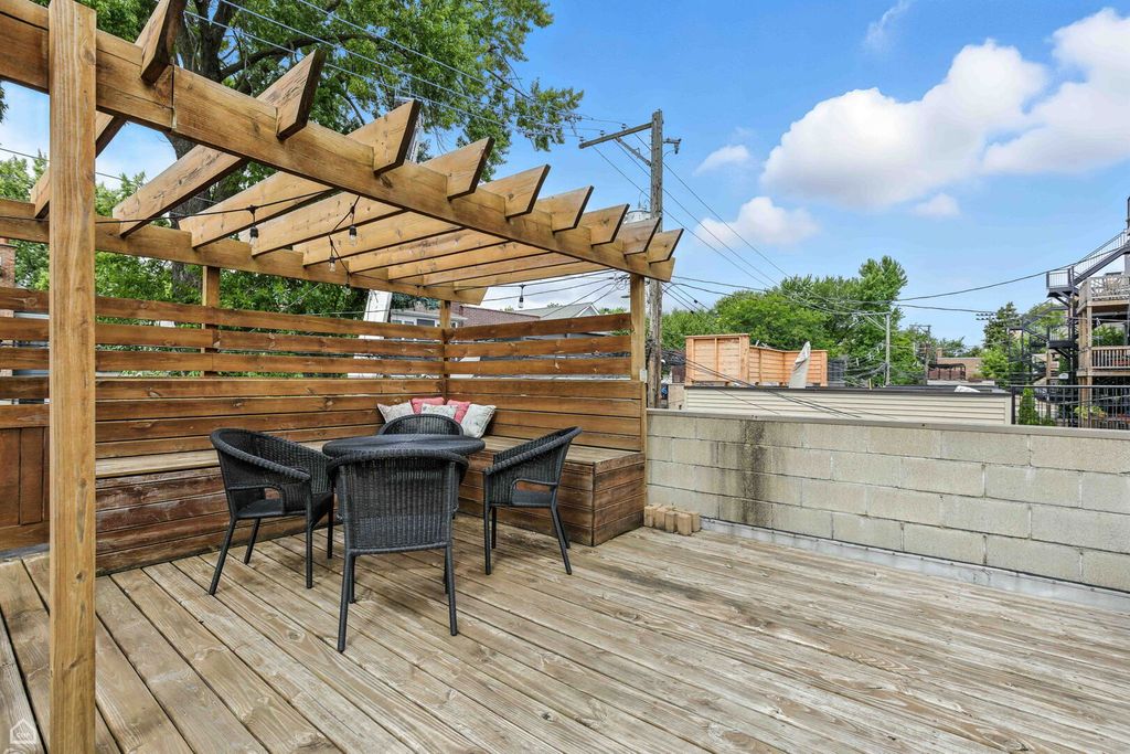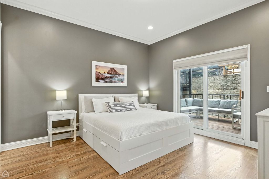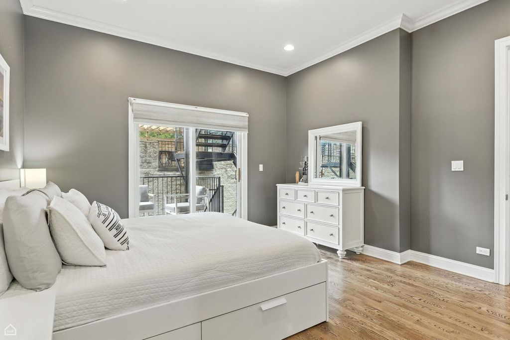 Recently updated Roscoe Village 4 bedroom, 2.1 bath duplex down with 4 outdoor spaces & garage parking, 1 block from Hamlin Park! This home is intelligently designed to maximize function, space and storage! Upstairs (your main level) you'll enjoy a beautiful white chef's kitchen, outfitted with Thermador and Fisher Paykel appliances, white quartz counter tops, custom Amish cabinetry, Hue lighting, a walk-in pantry and breakfast bar with seating for 4-6 stools. This connects to your living room with tile-surround fireplace & east-facing balcony (perfect for grilling or coffee mornings/wine nights). This level has richly finished hardwood floors throughout, taking you to 2 bedrooms, including the king-sized primary suite: upgraded bath with heated floors, double vanity and walk-in shower, plus walk-in closet, and access to your 2nd deck (which can also be reached by the back stairs -no going through the primary for hangouts!). There's also a powder room, plus an area near the stairs that could be used as additional space for a desk, play area or reading/sitting nook. Downstairs, you'll find the spacious family room which steps out to a private, enclosed patio with trex decking (your 3rd outdoor space), plus additional storage under your stairs. Two nicely sized bedrooms with organized closets, plus a full bath with soaking tub & separate shower, and full sized, side-by-side washer & dryer. Brand new HVAC, 1 garage parking space plus your 4th outdoor space - atop the garage roof deck - complete this home. A+ location convenient to Costco, multiple grocery stores, Midtown Athletic Club, highway access, CTA Damen Bus, dining/shops of Roscoe Village and a quick jaunt to Wicker Park, Bucktown and Lincoln Park. Hamlin Park is 1 block away, offering 9 acres of baseball/softball fields, swimming pool, fitness center, tennis courts, playground and dog-friendly area. Come home!