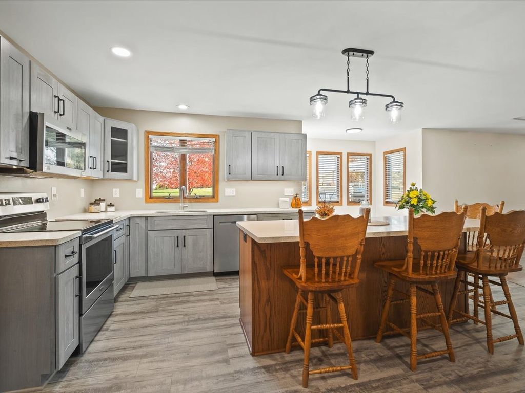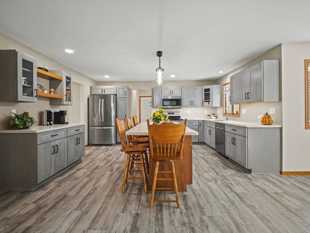 RURAL RETREAT & HOBBYIST PARADISE! 2 ACRES with a POOL, HOT TUB, PUTTING GREEN, & an AMAZING OUTBUILDING with it's own heated and air conditioned RETREAT! FULLY RENOVATED KITCHEN! Enjoy panoramic views of the rolling countryside from this beautifully updated home, located just a short drive to Galena, IL, and nestled near the charming small town of Stockton. This move-in ready home features Andersen windows, two fireplaces, and a stunning kitchen fully updated in 2022 with high-end soft-close cabinets, slide-out shelving, solid-surface counters, under-cabinet lighting, a separate pantry, and a dedicated coffee station. New appliances were installed in 2022, and new flooring was completed in 2021. Step outside to enjoy all the amenities, including a new pool and deck (2023), hot tub area (2022),updated landscaping with limestone accents (2022), a putting green (2025), and expanded acreage with an additional PIN for a full 2-acre property. Extra driveway concrete was added in 2024 for convenience. A major bonus is the 1,409 sq ft outbuilding-renovated in 2022 with heat, A/C, and loft storage-offering the perfect retreat, office, or hobby space. With14' ceilings, a 12' overhead door for RVs, and an additional 10' door, it's ideal for oversized equipment or recreational vehicles. Inside, the primary bedroom impresses with vaulted ceilings, a fireplace, a walk-in closet, and a beautifully tiled ensuite bath with a step-in shower. The guest bathroom features dual sinks, and the open-concept layout flows seamlessly from the living room to the kitchen. The home includes dual access to the basement (from inside and through the garage) with partial exposure, finished space, and a full bathroom. In addition to the many renovations, mechanical updates include a furnace in 2020 and a newer water heater. Come see all this beautiful property has to offer-an absolute MUST SEE! Some photos virtually staged.