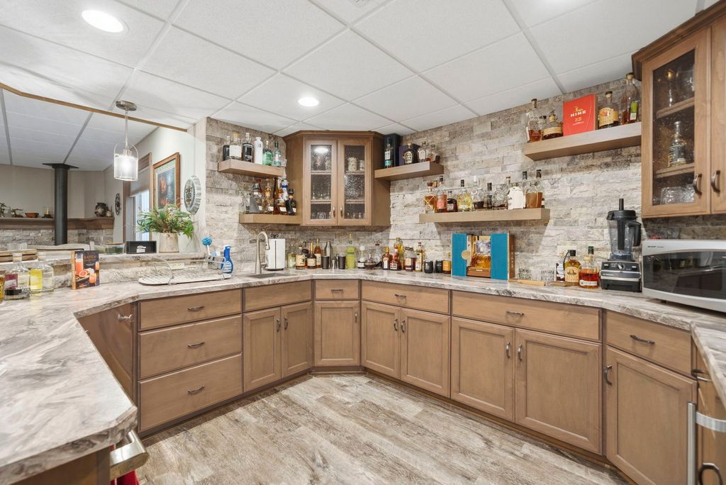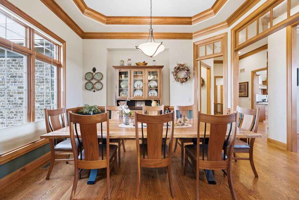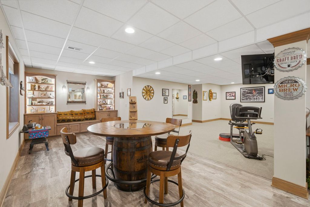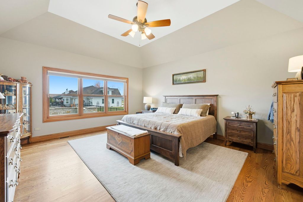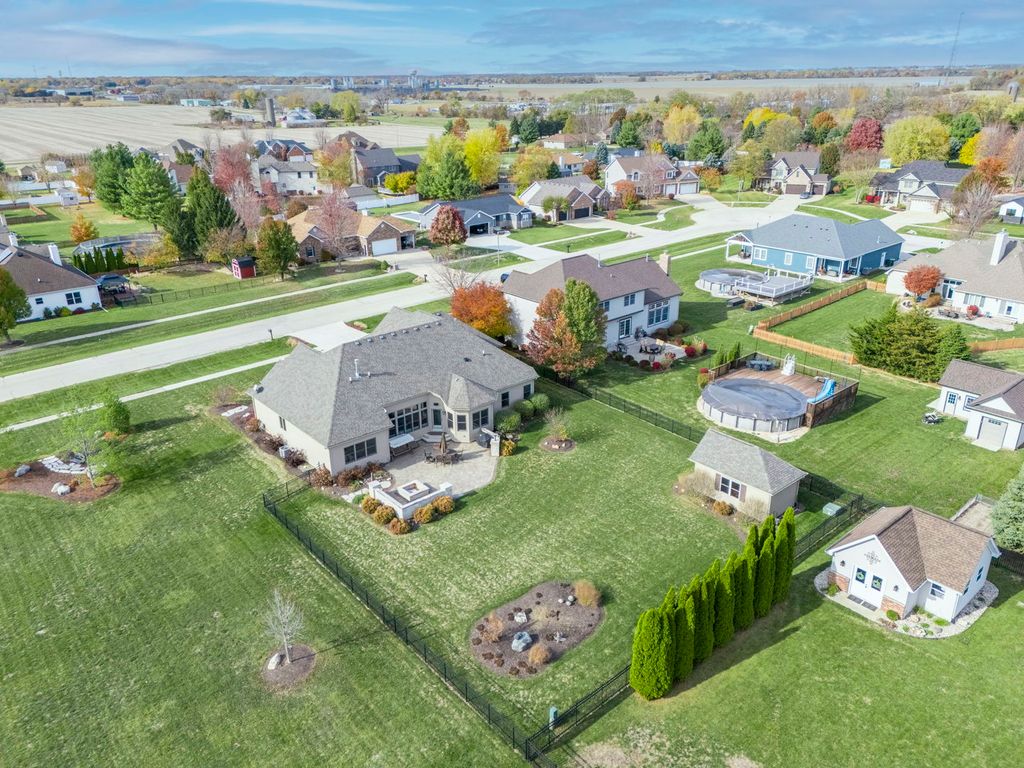 Welcome to this beautifully crafted custom ranch home, thoughtfully designed with quality construction, timeless style, and comfortable single-level living. Nestled in the peaceful community of Sandwich, this well-built residence offers the perfect blend of craftsmanship and everyday functionality. From the moment you arrive, you'll appreciate the home's inviting curb appeal and solid construction. Inside, an open and airy floor plan creates a seamless flow between living spaces, ideal for both daily living and entertaining. Spacious rooms, generous ceiling heights, and abundant natural light highlight the home's attention to detail and enduring design. The kitchen serves as the heart of the home, featuring ample cabinetry, quality finishes, and a layout that's both practical and welcoming. The adjoining living and dining areas provide a warm, comfortable atmosphere-perfect for gatherings or quiet evenings at home. The ranch-style expansive open floor plan offers the convenience of main-level living, with well-proportioned bedrooms, including a private primary suite designed for relaxation with an inviting en suite. Thoughtful storage, wide hallways, and easy accessibility make this home as functional as it is inviting, designed for both comfort and style. The finished basement is just as impressive with family/recreation room and expansive wet bar with built-ins. Bonus exercise room and also plenty of storage. Wait until you see the massive 3-1/2 car garage with workbench! Double lot is .92 acres, partially fenced, and offers an extensive brick paver patio with firepit! You'll enjoy a small-town setting with convenient access to local schools, parks, shops, and dining- while still being within reach of larger nearby communities. Must see to appreciate this masterpiece! If you're looking for peaceful living, quality construction, and a home built to stand the test of time, this custom ranch delivers on all fronts. A rare opportunity to own a truly well-built ranch home in one of Sandwich's most desirable areas.