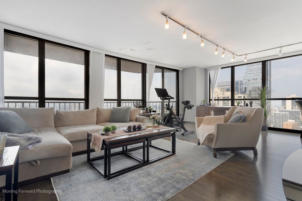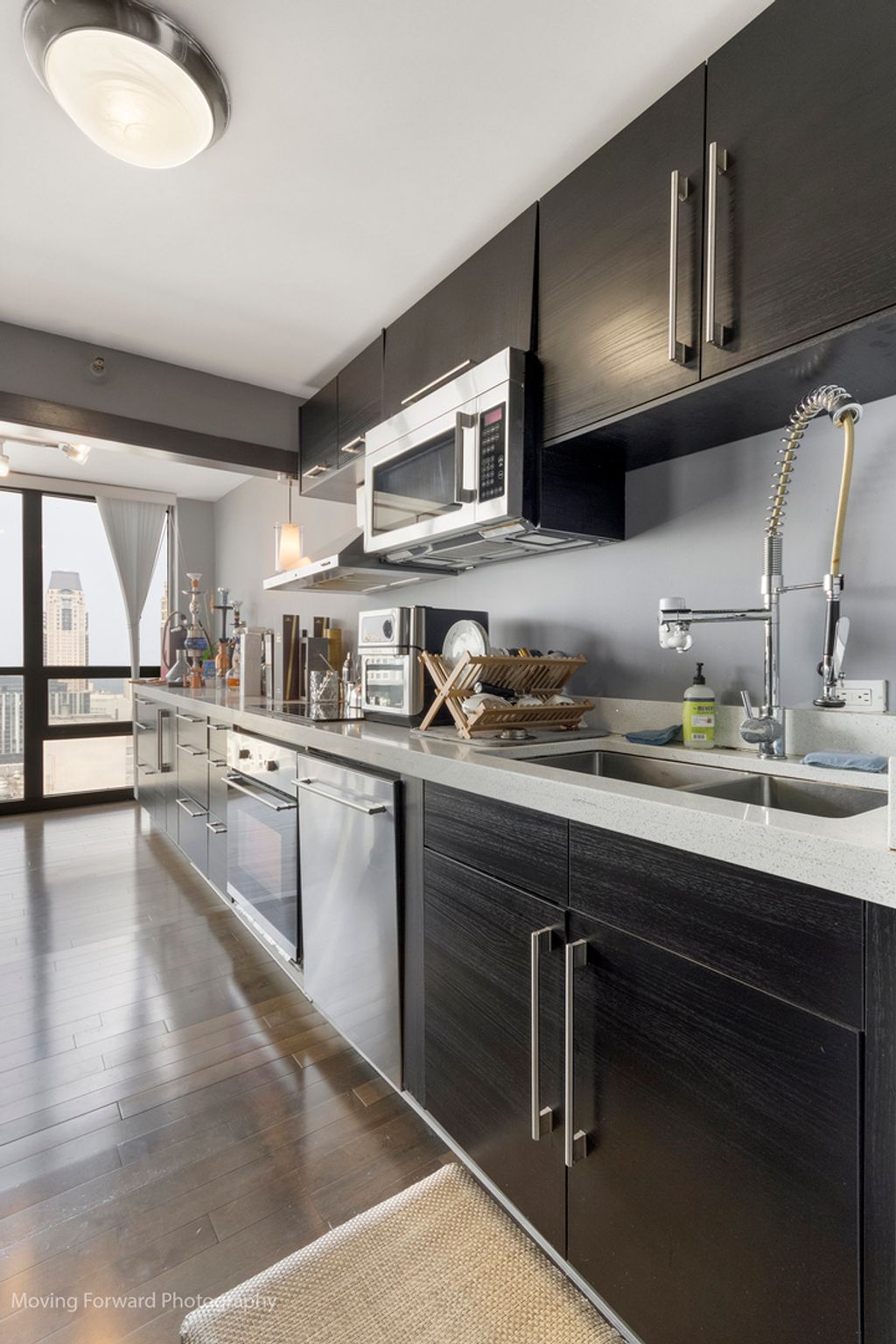 Floor to ceiling windows showcase stunning views of Lake Michigan & Chicago's iconic skyline. Each of the 2 bedrooms can accommodate a king-sized bed and furniture set with room to spare & plenty of closet space. The kitchen has 42" cabinets & a separate large dining area between it & the living room. Relax on the spacious balcony step outside to Chicago's most vibrant areas with world-renowned shopping & nightlife near the Magnificent Mile & Riverwalk. Trader Joe's, Whole Foods and Jewel are steps from your door. The building has a beautiful park with grills, lounging areas & an outdoor pool. The gym has a yoga room, cardio, weight rooms & whirlpool with a lounging area & sauna in each locker room. Building has 24hr doorman, party room, business center & dry cleaner. Convenient to the highway, bus & red line.