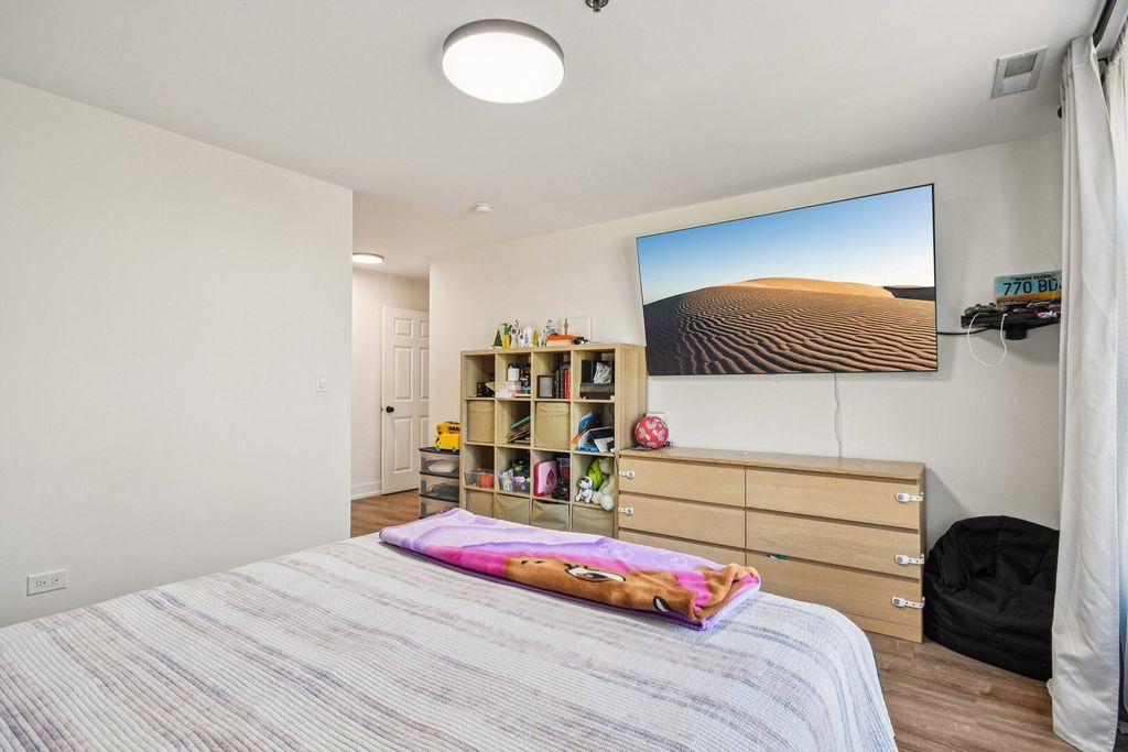 Updated and move-in ready 2-bedroom, 2-bath condo in one of Elmwood Park's hottest buildings. This spacious unit features an oversized living room with a wall of windows for excellent natural light, new flooring, fresh paint, new baseboards throughout, and new light fixtures. The open kitchen overlooks the living area and includes a breakfast bar, granite countertops, updated cabinets, and updated stainless steel appliances. Large laundry room with front-loading washer and dryer and extra storage space. Generous front bedroom with large windows and great closet space. The primary suite offers a double vanity, jetted tub, and separate shower. Secure elevator building with intercom-to-phone entry, garbage chute on every floor, rentable party room, first-floor storage, and 2 assigned parking spaces included. Concrete floors and walls between units for added privacy. Newly paved parking lot and professional landscaping. Conveniently located near Metra, CTA, dining, and entertainment.