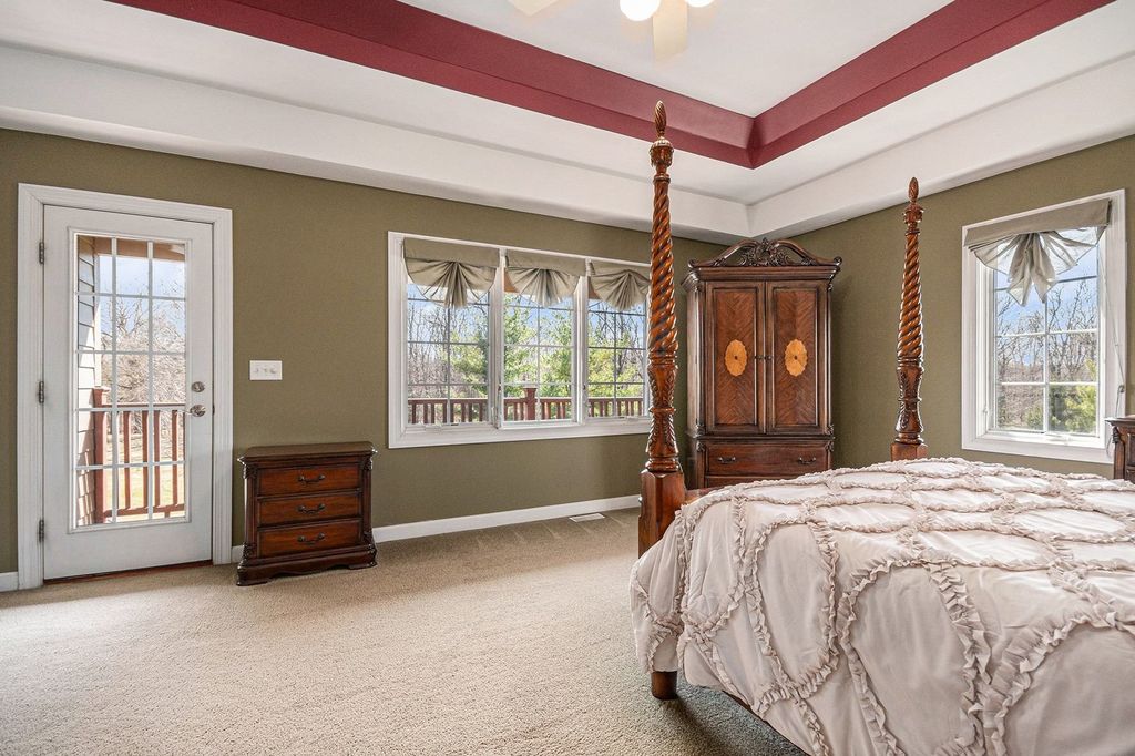 Welcome to this custom built beautifully maintained 3 bedroom, 2 1/2 bath home in desirable Wood Cove Estates, offering space, comfort, and a truly serene setting. Step into the impressive two-story foyer, which opens to the living and dining rooms, highlighted by soaring vaulted ceilings that create a bright, open, and airy feel. The heart of the home is the spacious kitchen, featuring a center island with seating, double oven, cooktop, and all appliances included. A generous eat in area provides plenty of room for a full size table and overlooks the backyard, perfect for everyday living and entertaining. The adjacent family room is warm and inviting with a cozy wood burning fireplace, while a first-floor den with a pocket door offers the ideal space for a home office or quiet retreat. Upstairs, the primary suite is a true escape with a tray ceiling, walk-in closet, and private balcony overlooking the expansive backyard. The ensuite bath features double sinks, a oversized jetted tub, and a separate walk-in shower. Two additional bedrooms offer large closets and ceiling fans, providing comfort and functionality for all. The full unfinished lookout basement boasts 9-foot ceilings, drywall already in place, and is ready for your finishing touches. It offers incredible potential for added living space and storage. Car enthusiasts and hobbyists will love the oversized 3 1/2 car garage with access to the basement, and a convenient service door to the side yard. Outdoor living shines with a two level Trex deck overlooking a large, private yard that backs to acres of protected woods ensuring peaceful views and no future development. Major updates provide peace of mind, including new hardboard siding (2019), battery backup sump pump (2020), HVAC (2022), roof and gutters (2024), and hot water heater (2025). This is a rare opportunity to own a well updated home in a picturesque setting, don't miss it!