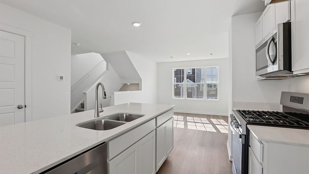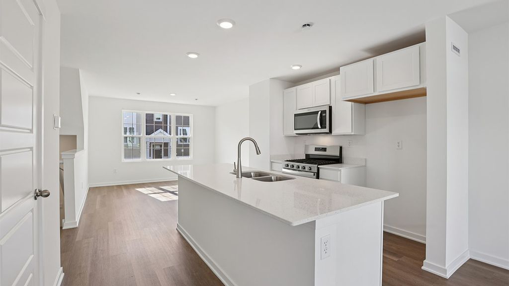 Envision yourself at 1415 Oakfield Lane in Pingree Grove, Illinois, a modern, new townhome in our scenic Cambridge Lakes North community. This townhome is MOVE-IN READY! Homesite includes a fully sodded yard that is maintained throughout the year as well as snow removal in the winter. This McKinley townhome is a captivating floor plan with over 1,500 square feet of living space which includes 2 bedrooms, loft, 2.5 baths and a finished flex space. As you step inside from the garage you'll be greeted by a finished flex space, perfect for an office or playroom. Walking up the stairs, you will find this home's open concept main level living space centered around a large kitchen island. The cozy kitchen overlooks both the front dining and back great room areas. Additionally, your kitchen features designer cabinetry, quartz countertops, stainless-steel appliances, and pantry. Arriving at the top floor, you'll find our bedrooms with a loft. Enjoy a spacious primary bedroom suite which includes a large walk-in closet lit up by its private bathroom with dual sinks and a walk-in shower. The rest of the upper level features a laundry room, secondary bedroom, loft with a full second bath and linen closet. You'll find luxury vinyl plank flooring throughout the main level kitchen and dining, bathrooms, and laundry. All Chicago homes include our America's Smart Home Technology. Exterior photo of actual home. Photos and model photos are of similar home. Actual home built may vary.