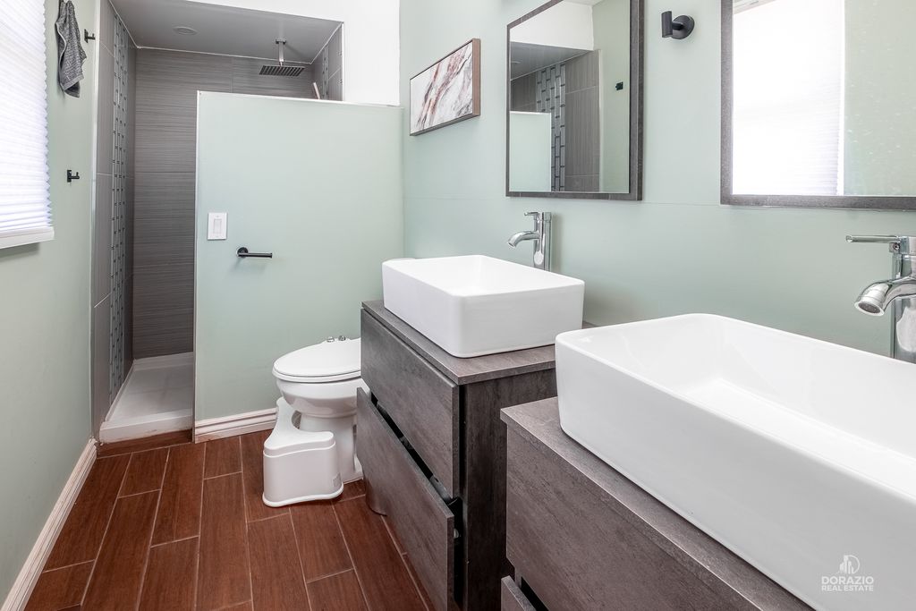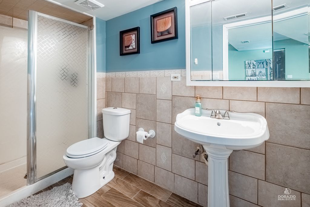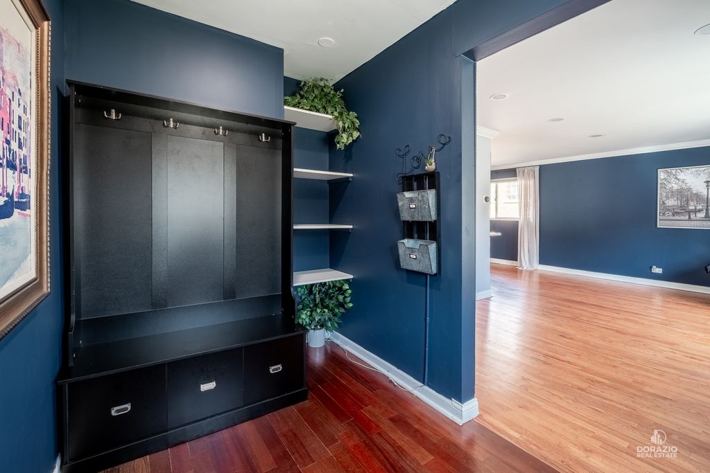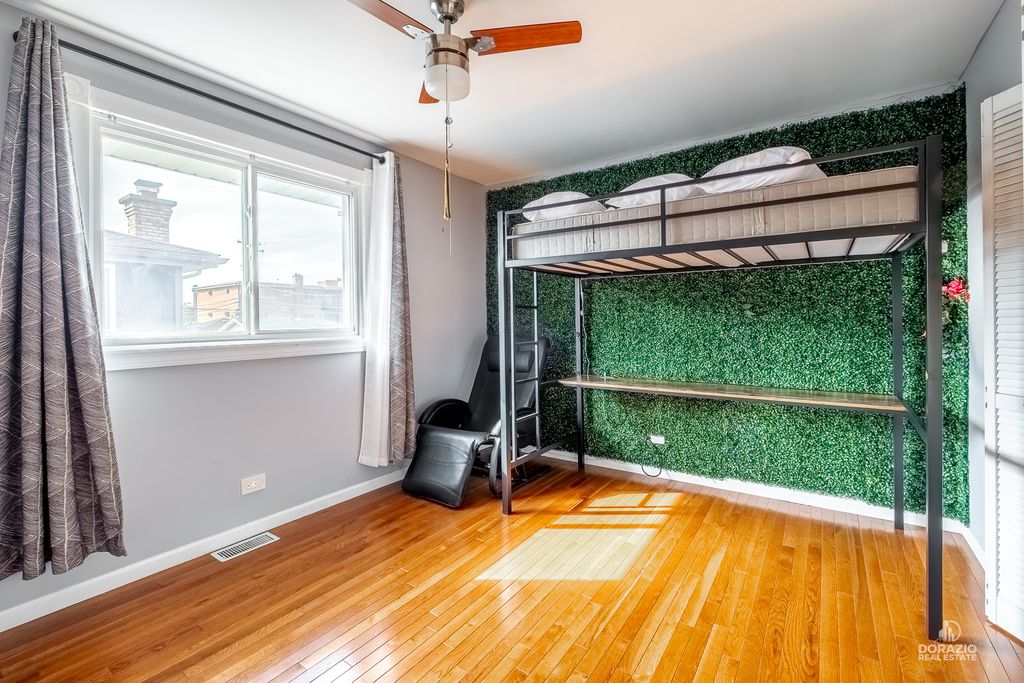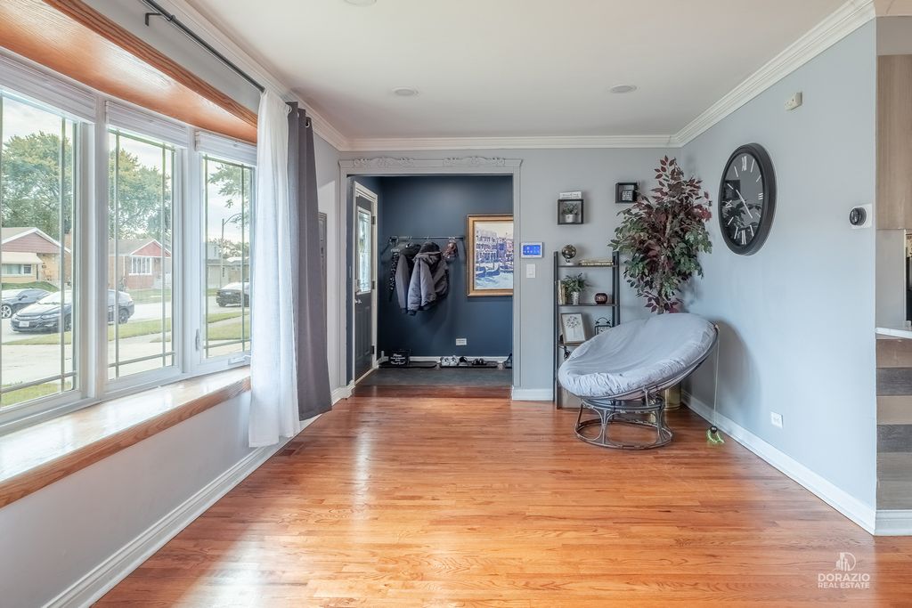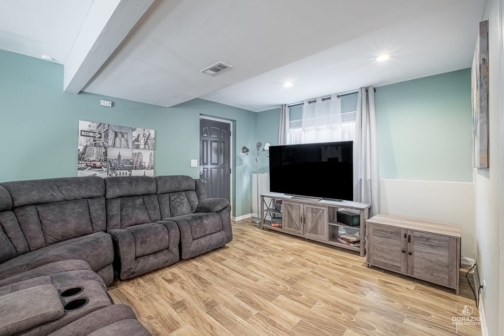 Welcome to this beautifully updated 3-bedroom, 3-bath split-level home, thoughtfully designed for both comfort and entertaining. Recently refreshed with modern, stylish finishes, this home features hardwood flooring throughout, custom built-in shelving in the foyer, and a striking media wall in the living room. The kitchen is sleek and functional, offering quartz countertops, an island with seating, and direct access to the yard through double doors with built-in blinds. All three bedrooms are located on the upper level, including a spacious primary suite with a private en suite bath. Downstairs, the expansive L-shaped family room is perfect for gatherings, complete with a wet bar, wood-burning fireplace, and full bathroom-ideal for guests. The lower level also includes a laundry room with newer Maytag appliances and a secondary exit for added convenience. Outside, enjoy a low-maintenance backyard with a firepit and dedicated lounge space. The extra-long driveway includes several parking spots in addition to the finished 2-car garage with shelving and drywall. Smart home features include fiber-optic internet, smart lighting, a smart thermostat, Ring doorbell, and ADT camera system. Recent updates: custom blinds throughout, sump pump (2024), washer/dryer (2024), dishwasher (2023), garage door opener (2024), and fresh interior paint. Roof is 9 years old. Tucked at the end of a quiet cul-de-sac, this home blends modern style, convenience, and comfort-all in a peaceful setting.