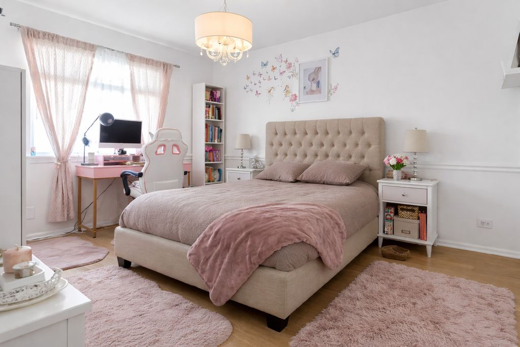 Luxury Turnkey Masterpiece offering 3,461 sq ft of beautifully updated living space in one of Wheeling's most desirable neighborhoods. This exceptional home features over $185K in premium upgrades with high-end finishes and modern smart home features throughout. The stunning primary suite offers a spa-inspired bath (2024) with Italian tile, walk-in rain shower, floating vanity, private water closet, and a custom walk-in closet with designer chandelier. The chef's kitchen (2023) showcases marble countertops and premium Samsung Bespoke appliances, including an AI Family Hub refrigerator, seamlessly flowing to the patio through a new sliding door. Interior highlights include refinished oak hardwood floors (2025), new second-floor flooring (2025), designer lighting, custom media wall, and acoustic panels. The fully finished basement adds versatile living space. Major updates include roof (2018), HVAC (2020), and water heater (2023). Exterior features a metal gazebo (2025), shed (2025), picket fence, and sprinkler system. 2-car garage with insulated modern door. Advanced security includes camera system, security door, 14 deadbolts, and titanium reinforcements (2026). Close to parks, pool, fitness center, dining, shopping, and entertainment. Truly move-in ready luxury living.